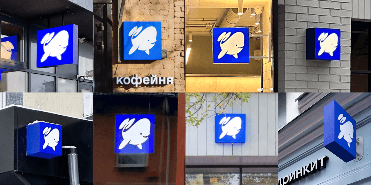 Мы использовали куб как метафору кофейне Дринкит, компактной точки, которая светится на карте города. Из множества таких «кубов-точек» рождается структура сети — визуальный образ масштабирования.