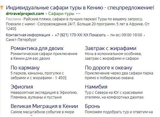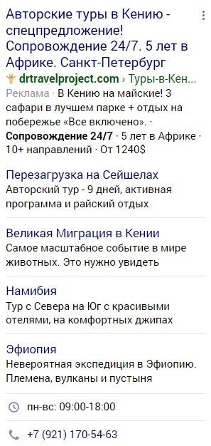 Особенность заключалась в том, что поисковый спрос на туры в Африку был невысоким, на тот момент не более 20 000 поисковых запросов месяц по России (максимально подобранная целевая семантика) и это при значительной конкуренции.