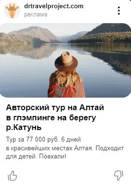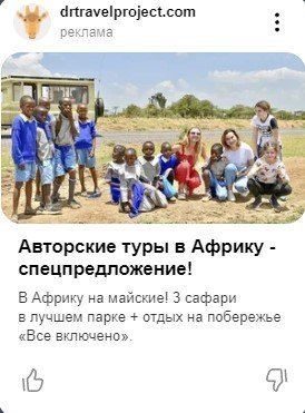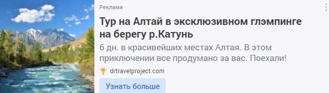 В креативах и текстах указывали актуальную цену тура, чтобы снизить показатель отказов и повысить качество заявок. Так как с трафиком проблем не было, а бюджет был ограничен, мы решили сразу знакомить клиентов с ценой в объявлении. Рекомендуем это делать, если нужны качественные заявки, а если нужно больше количество и дальнейшая проработка менеджером - цену указывать не нужно.