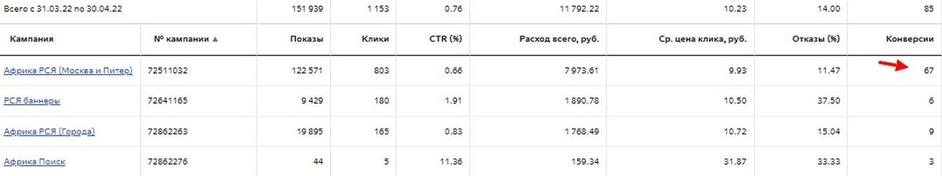 Поисковая кампания шла три дня, на четвертый день ее остановили, так как она не достигла необходимых показателей.