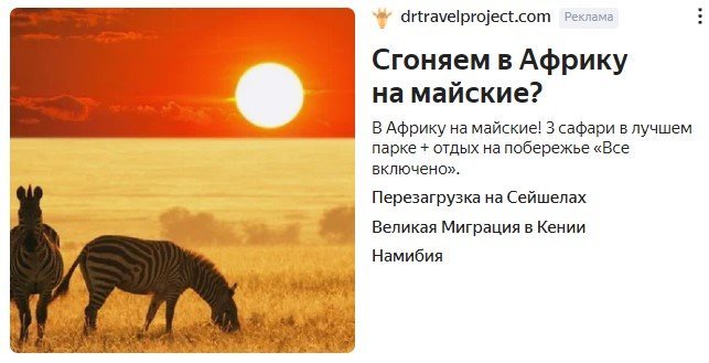 Графическую РСЯ отрисовывали в надежде, что для туров должен сработать сочный креатив. Размещали по тем же ключам, что и текстово-графическую РСЯ, но с другими форматами и без показов на мобильных устройствах.