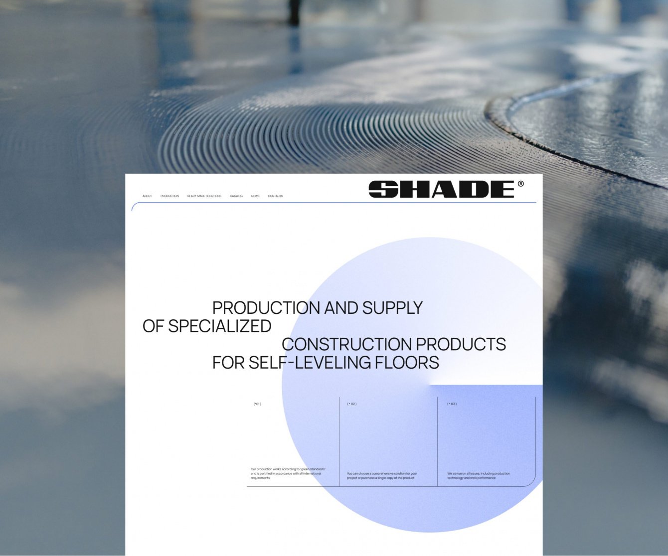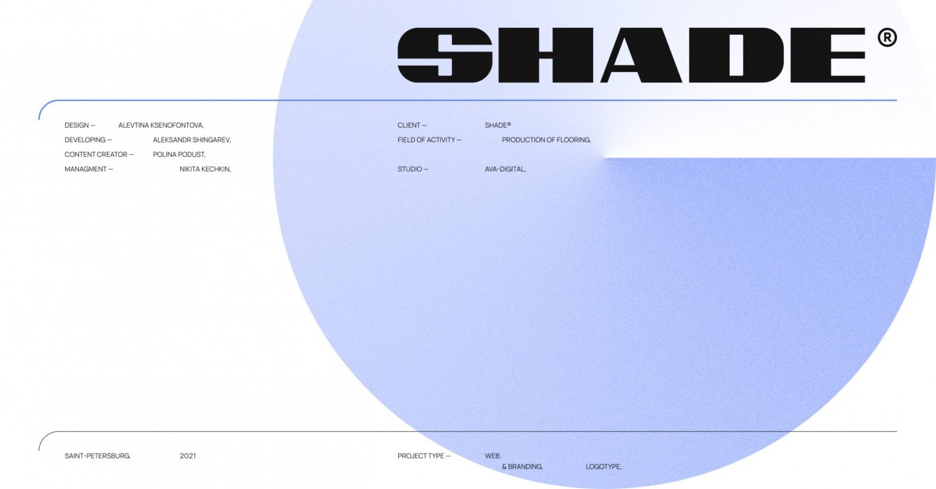 Масштабный и уникальный проект для новой компании — SHADE. С ребятами мы уже были знакомы — они пришли к нам из MAPA-GROUP, сайт которой тоже сделан в AVA. SHADE производит напольные покрытия для различных помещений.