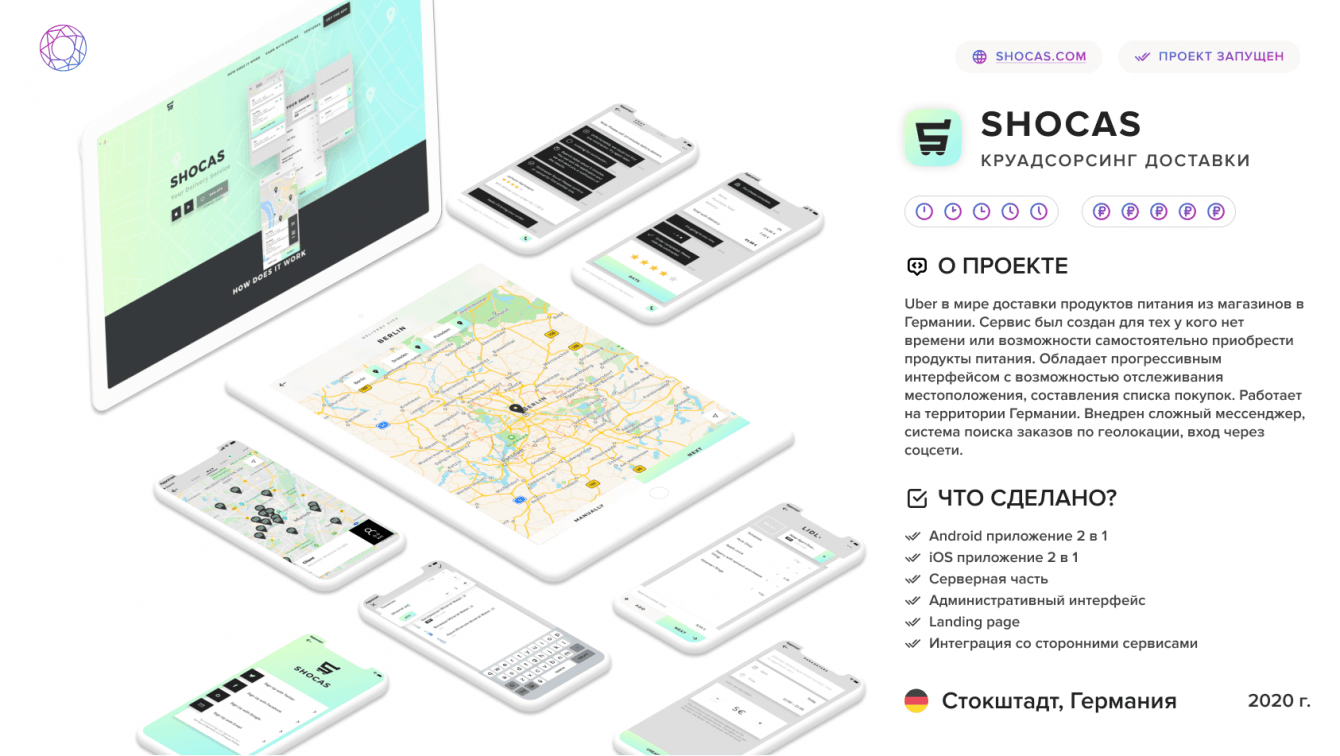 Задача состояла в создании современного и удобного инструмента, который поможет покупателям экономить время и получать продукты на дом, а поставщикам - зарабатывать на выполнении заказов. "Shocas" стала ответом на запрос современного образа жизни, облегчая процесс покупок и доставки продуктов в Германии.