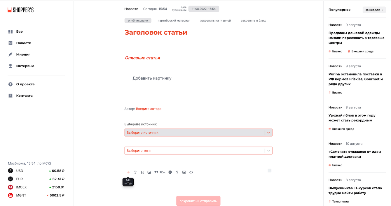 Нам удалось разработать удобный и понятный инструмент для публикации новостей. Для работы с контентом не нужно обладать навыками программирования и обычный редактор может справиться с размещением статей.