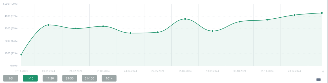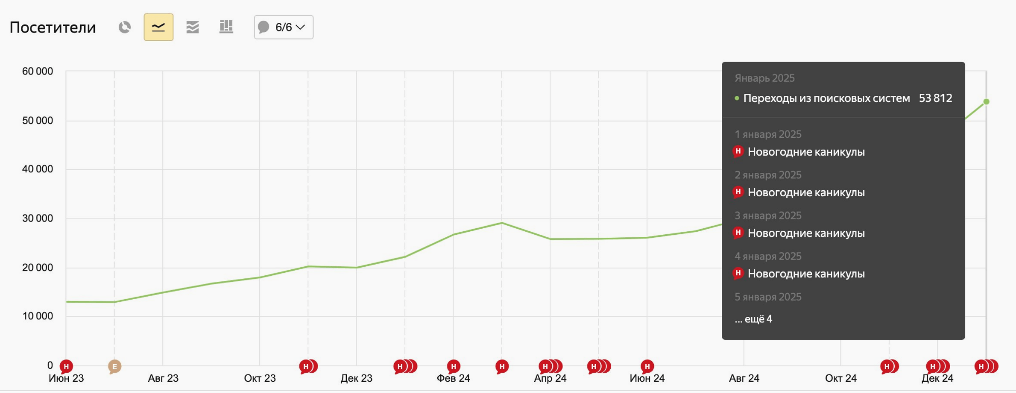 Пересмотрели строение сайта и расширили структуру для охвата большего количества целевых запросов.