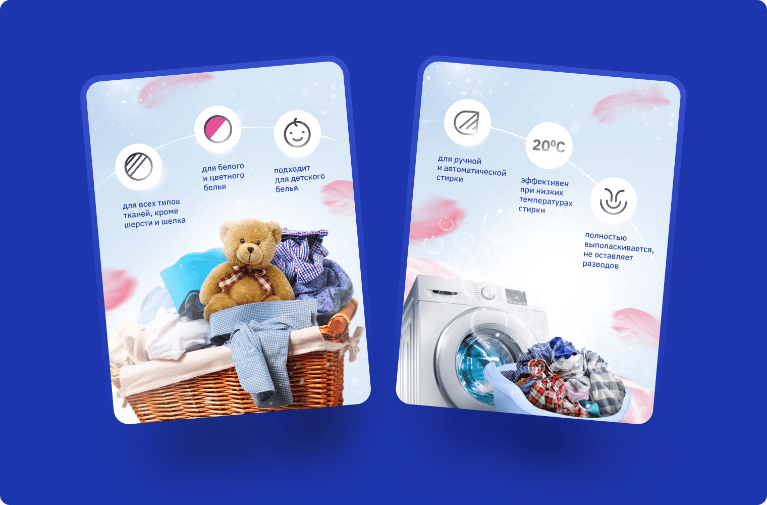 Подчеркивание количества стирок делает акцент на экономичности покупки.
