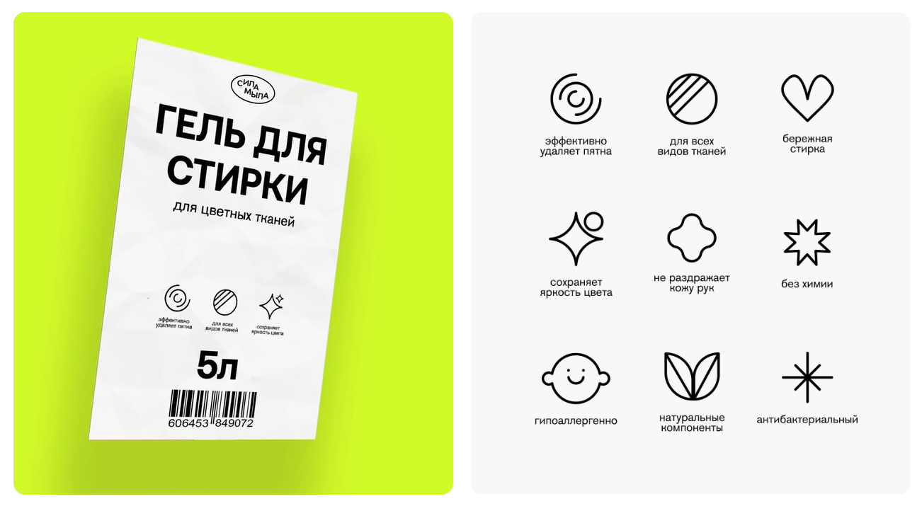 Простые силуэты легко узнаваемы и интуитивно понятны для потребителей. Их легкое считывание создает мгновенное визуальное соответствие между изображением на упаковке и назначением продукта.