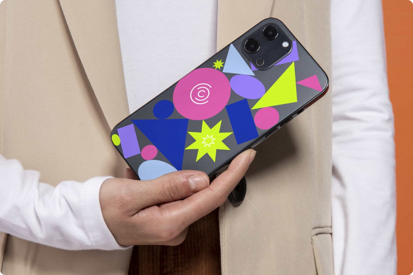 В качестве фигур для паттернов были использованы простые геометрические силуэты предметов (футболки, стакана, плитки пола и т.д.). Это дало визуальному решению ряд стратегических преимуществ: