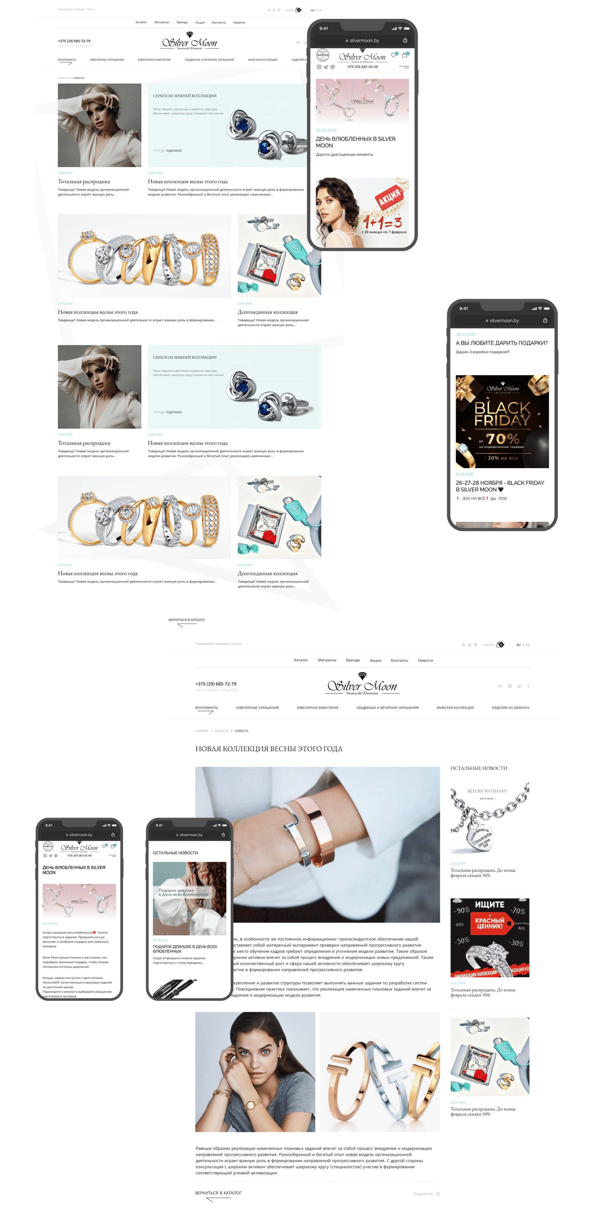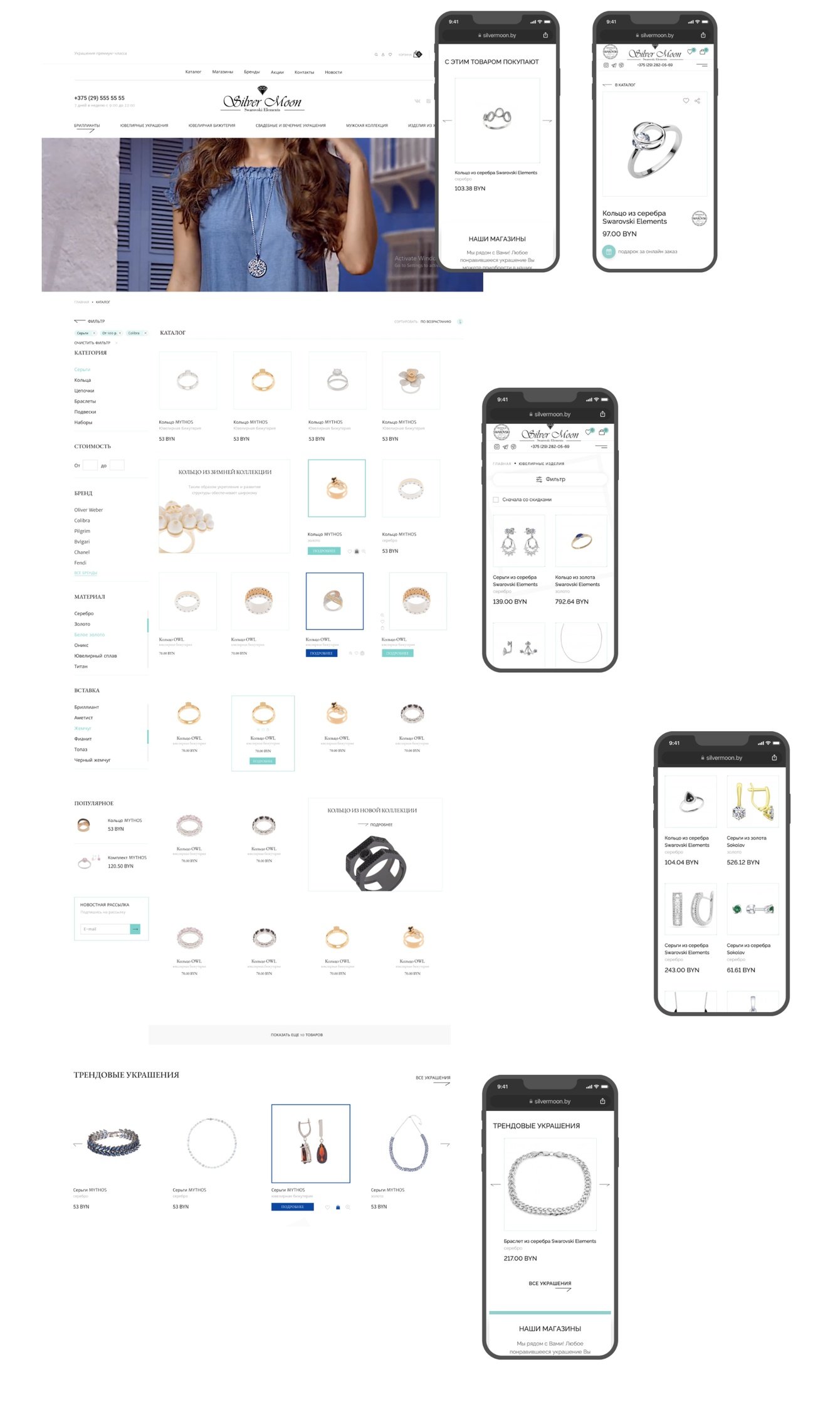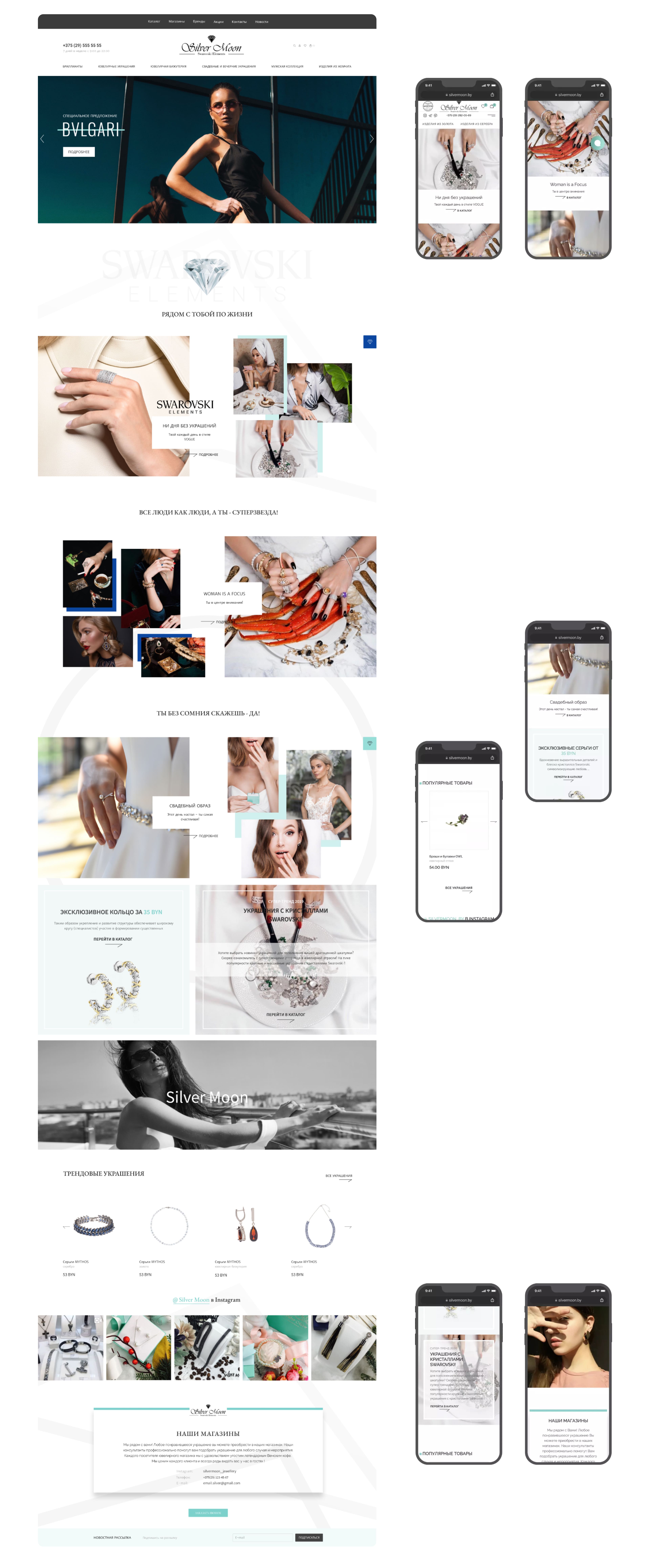 Silver Moon — это интернет-магазин, специализирующийся на продаже бижутерии и ювелирных изделий. Главная цель проекта заключалась в том, чтобы создать стильный, современный и визуально привлекательный образ бренда, который отражал бы его уникальные особенности и привлекал внимание целевой аудитории.