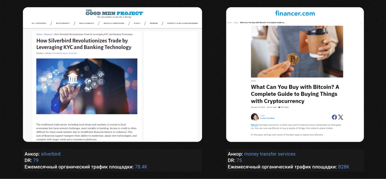 В результате наши статьи регулярно выходили на авторитетных и известных площадках с высоким DR: