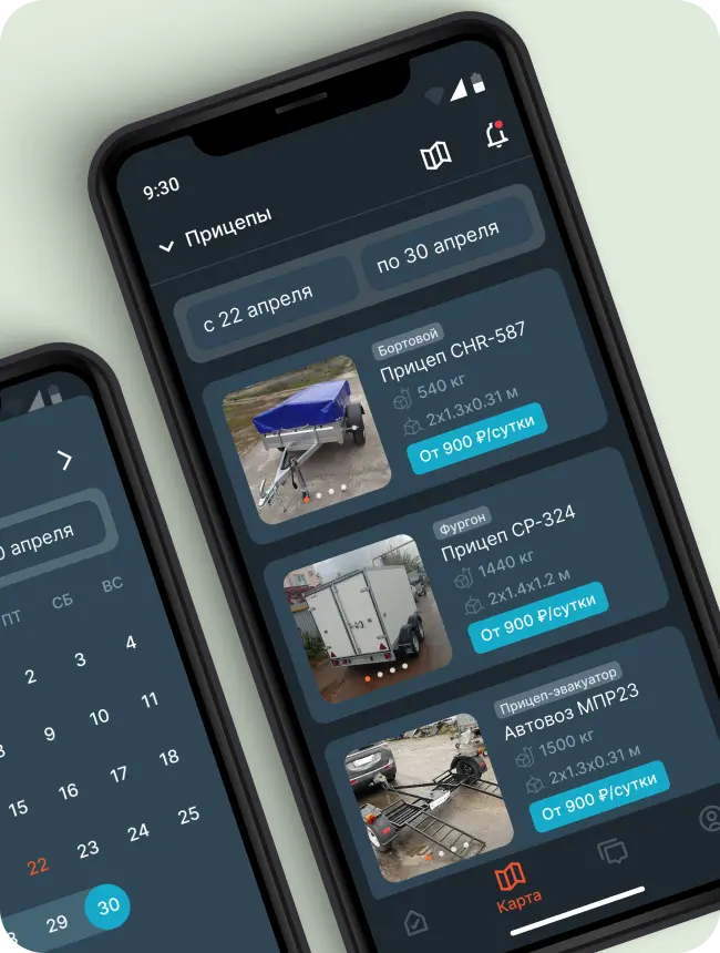 Мы разработали комплексное решение, включающее мобильные приложения для iOS и Android, веб-версию и административную панель. Приложение позволяет быстро найти подходящий прицеп по заданным параметрам, выбрать удобные даты аренды и моментально забронировать его с оплатой прямо в приложении. Интеграция с CRM-системой заказчика обеспечивает автоматическую обработку заказов и синхронизацию данных.