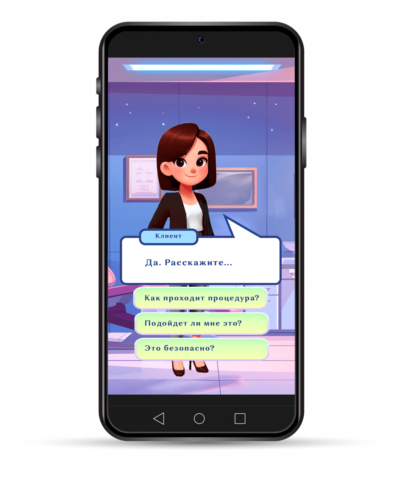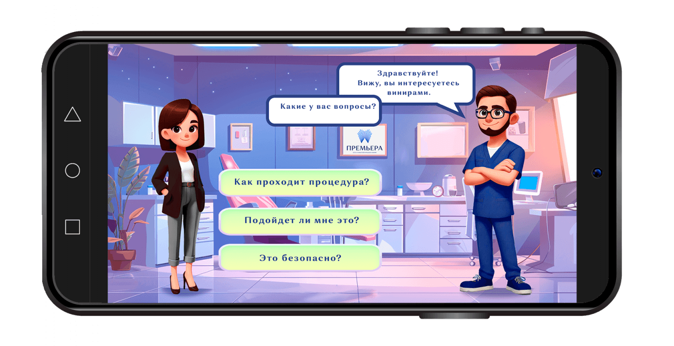 Лидогенератор в формате короткого квиза на тему виниров отвечает на самые распространенные вопросы, привлекает внимание целевой аудитории и запоминается. После прохождения квиза пользователи попадают в мини-игру - симулятор, который демонстрирует, как зубы выглядят до и после установки виниров.