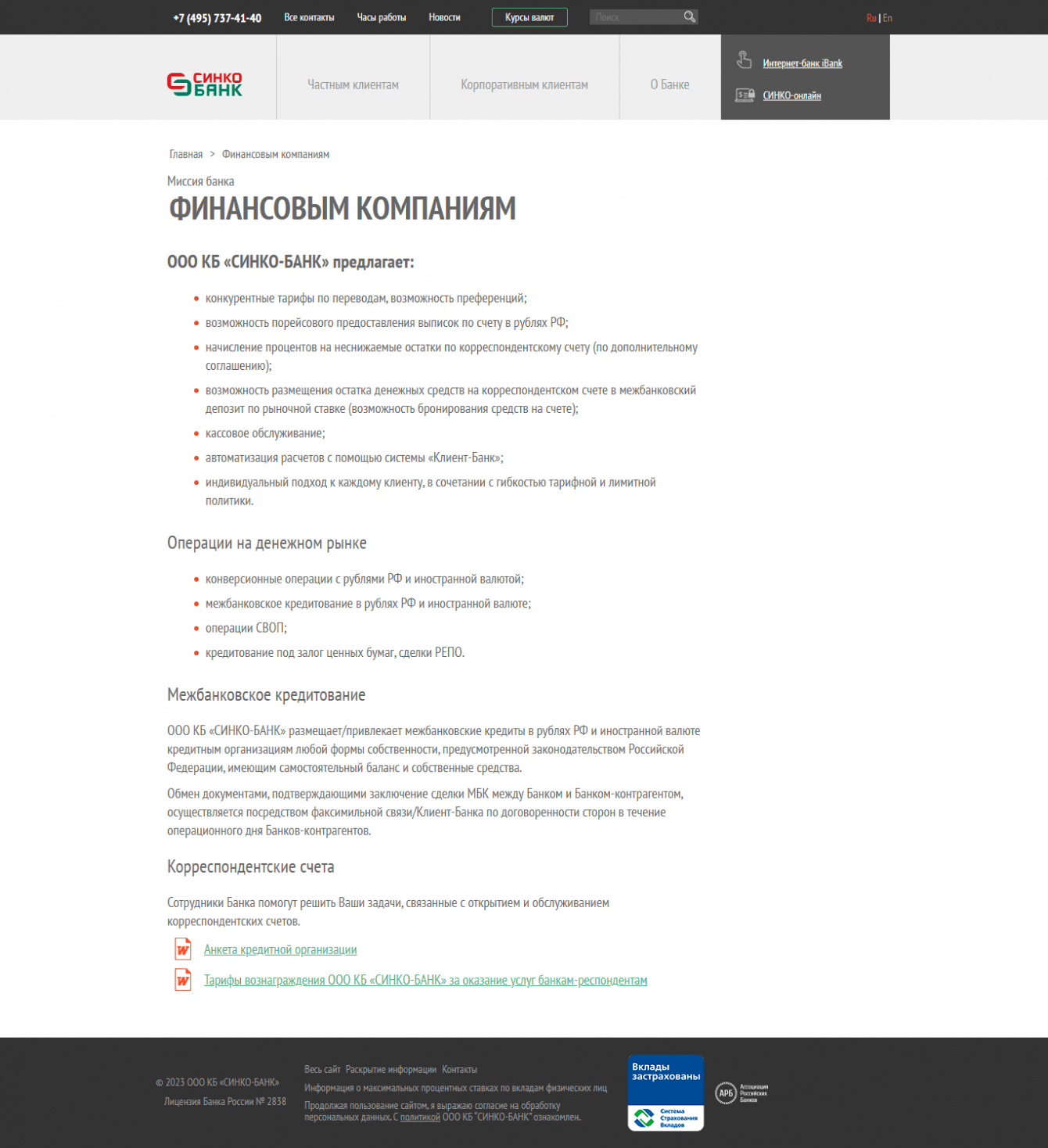 Создание, обновление и поддержка сайта банка.