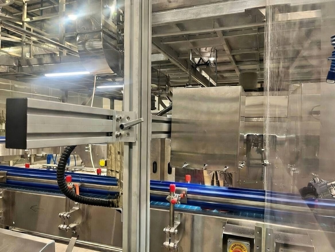 Система разработана с учётом гибкости производства: высоту камеры можно быстро перенастроить под разные форматы банок без длительных простоев линии.