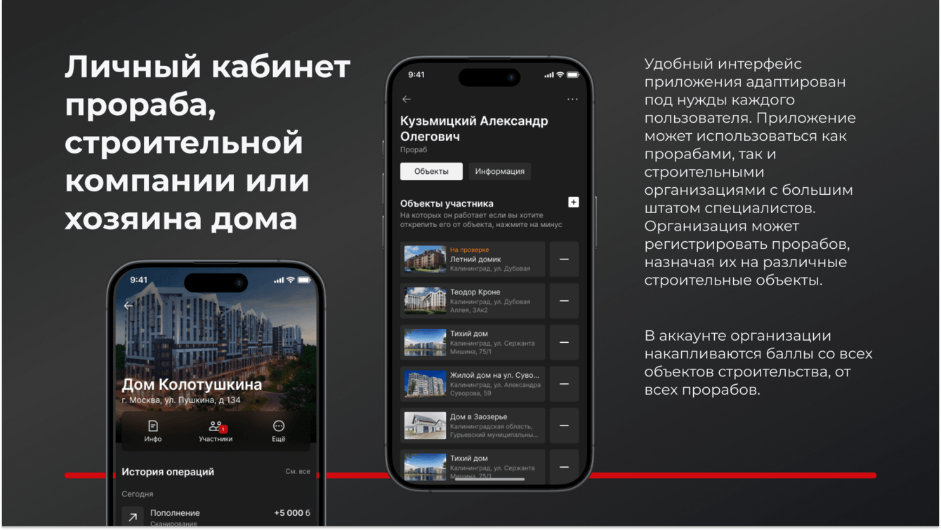 В аккаунте организации накапливаются баллы со всех объектов строительства, от всех прорабов.