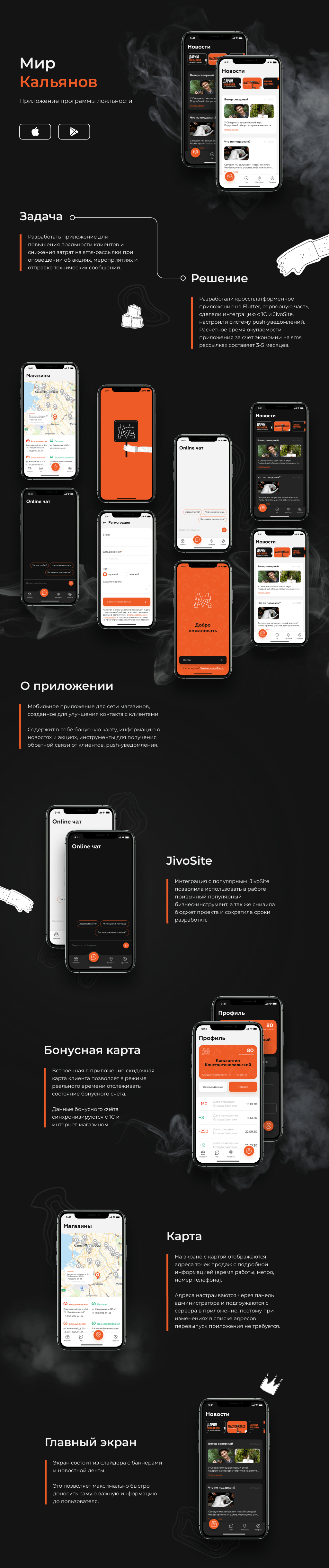 Создали приложение. Пока оно не размещено на сторах - по решению заказчика публикация временно отложена.