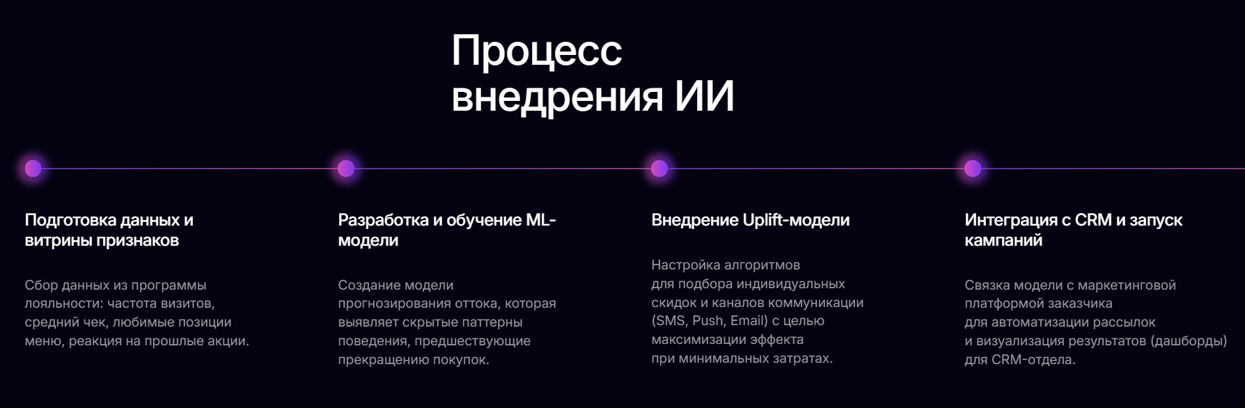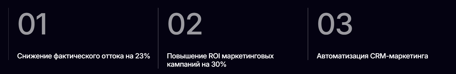 - Повышение ROI маркетинговых кампаний на 30%.