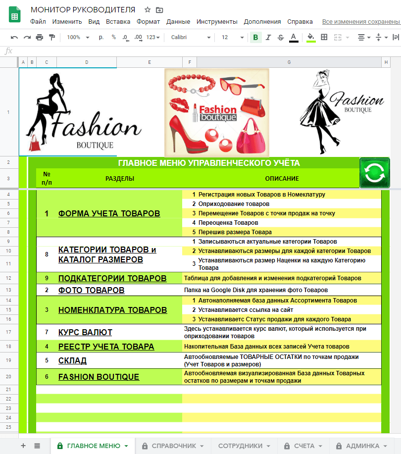 - Автообновляемая визуализированная База данных Товарных остатков по размерам и точкам продажи