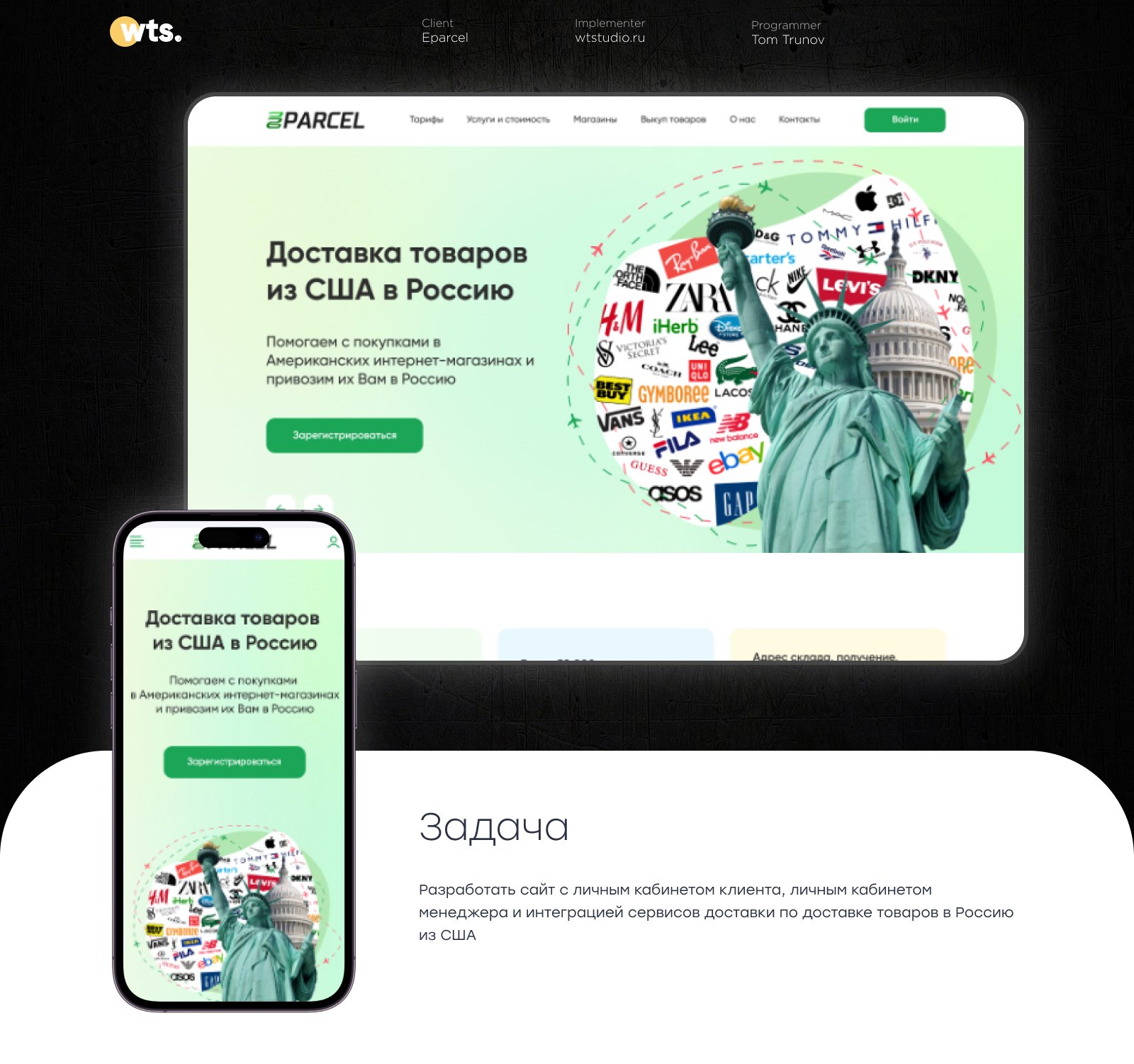 Разработать сайт с личным кабинетом клиента, личным кабинетом менеджера и интеграцией сервисов доставки по доставке товаров в Россию из США