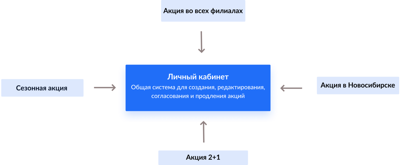 С акциями стало работать куда проще: появилось общая система для создания, редактирования, согласования и продления акций. Энтропия при запуске акций заметно уменьшилась, раньше все этапы проводили люди вручную и процесс не был прозрачным, так как все взаимодействие происходило в переписках на почте.