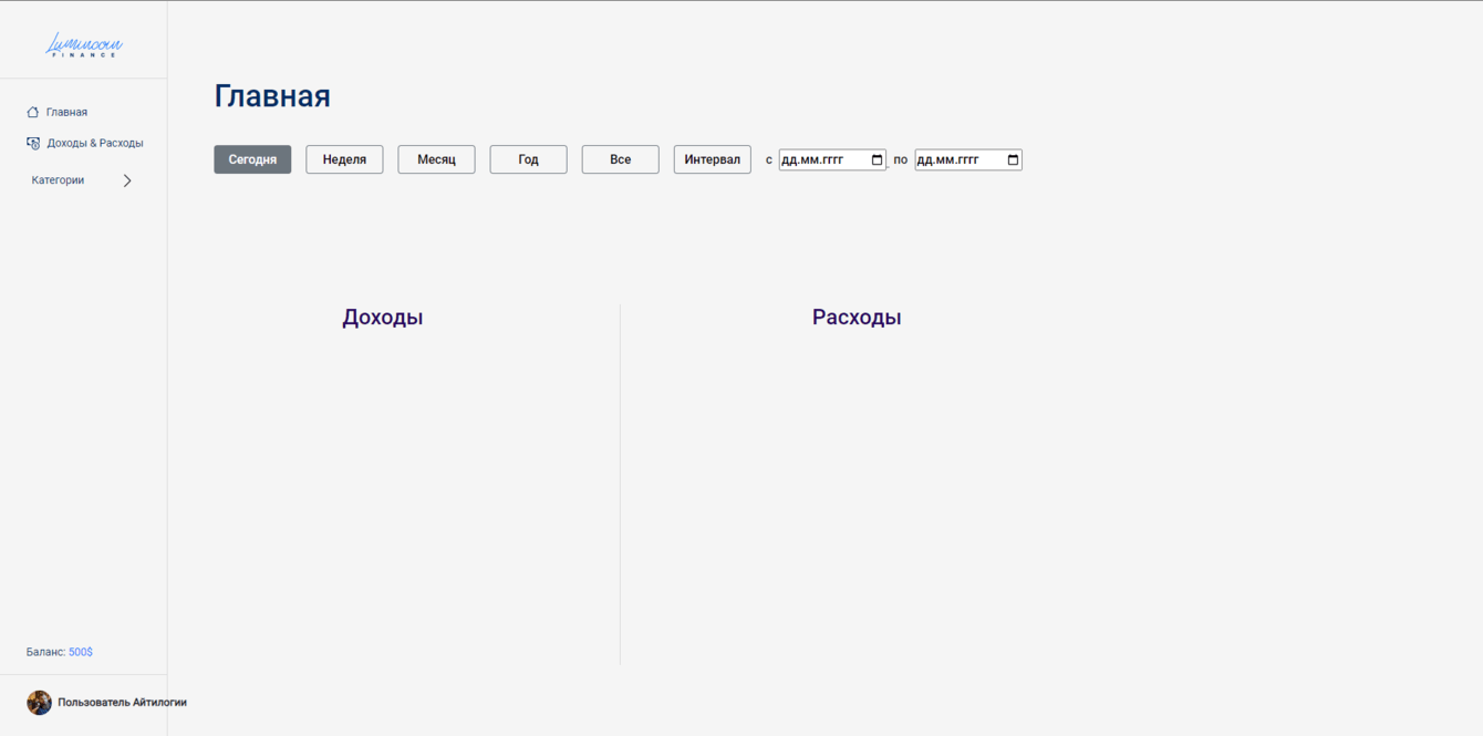 - Создание прототипов интерфейсов для страниц авторизации, регистрации, категорий доходов и расходов, управления доходами и расходами, и главной страницы.