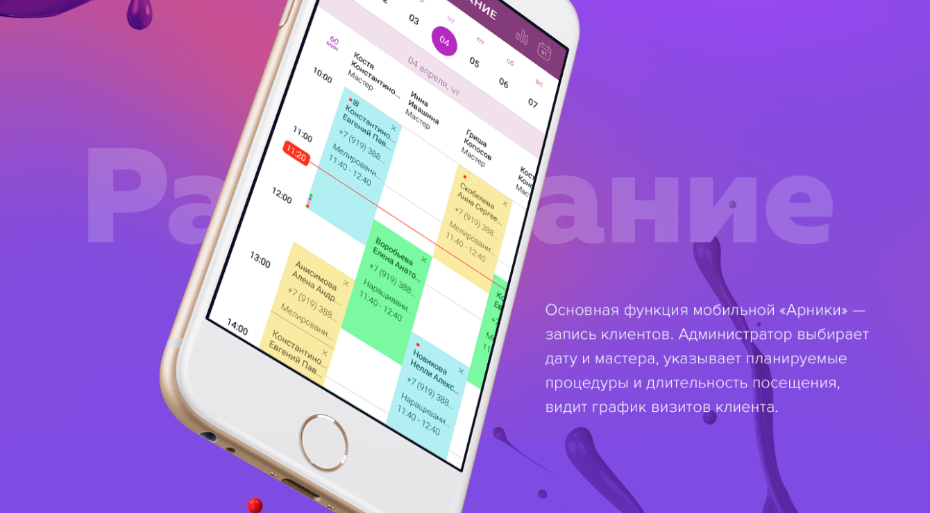 В 2012 году команда из Екатеринбурга запустила проект по созданию облачной системы для управления салоном красоты — Арника. Этот сервис позволяет повысить эффективность работы салона с помощью инструментов для управления продажами, персоналом и финансами. В 2014 году мы разработали для них дизайн мобильного приложения.