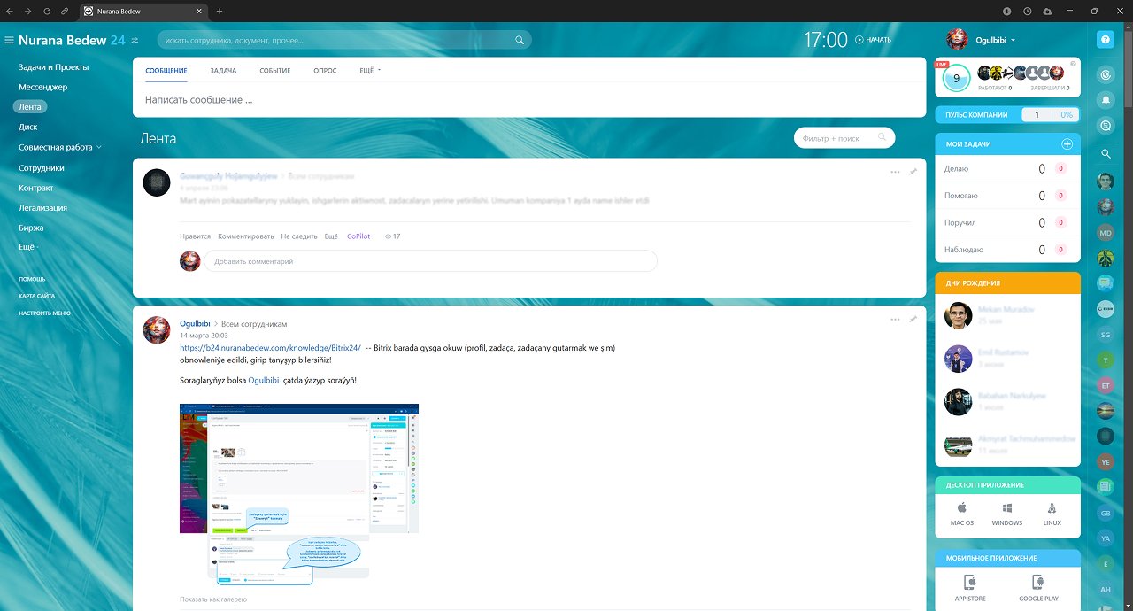После этого сформировали план внедрения Bitrix24. В течение одного месяца ежедневно работали с руководителями отделов — настраивали роли, логику задач, маршруты согласования. Затем по цепочке передали систему сотрудникам, обучили работе с ней и сопровождали внедрение.