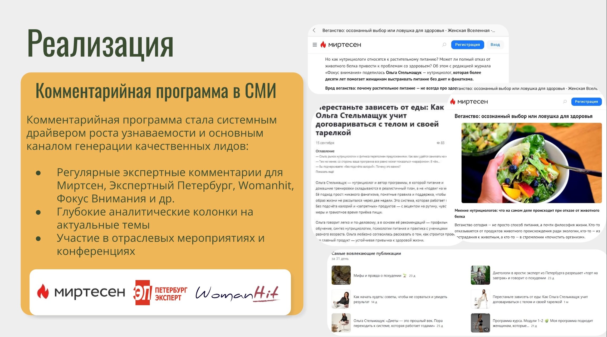· Реализация комментарийной программы для закрепления статуса востребованного специалиста.