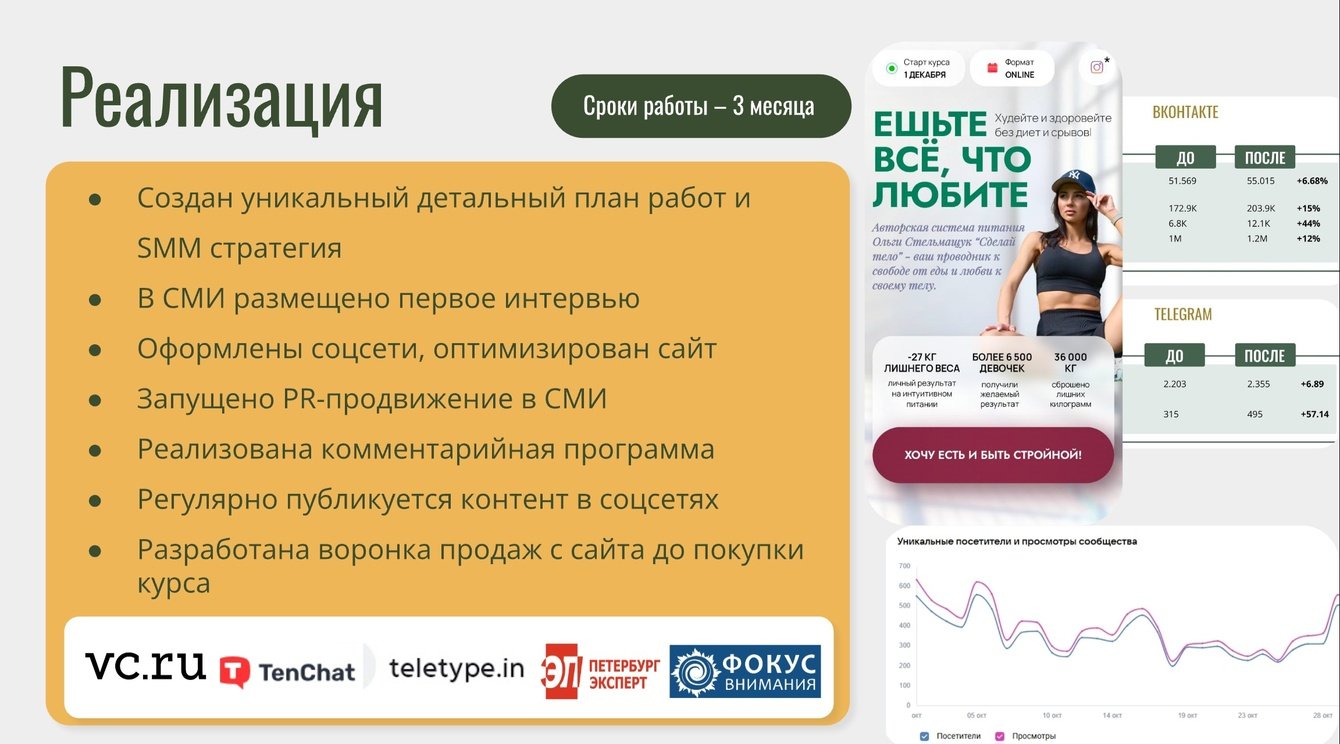 Кейс Ольги Стельмащук наглядно демонстрирует, что успешный личный бренд в персональной нише строится не на случайных активностях, а на продуманной системе, где стратегия, упаковка, медиакоммуникации и коммерция синхронизированы для достижения одной цели — трансформации личного опыта эксперта в ценный, узнаваемый и прибыльный актив.