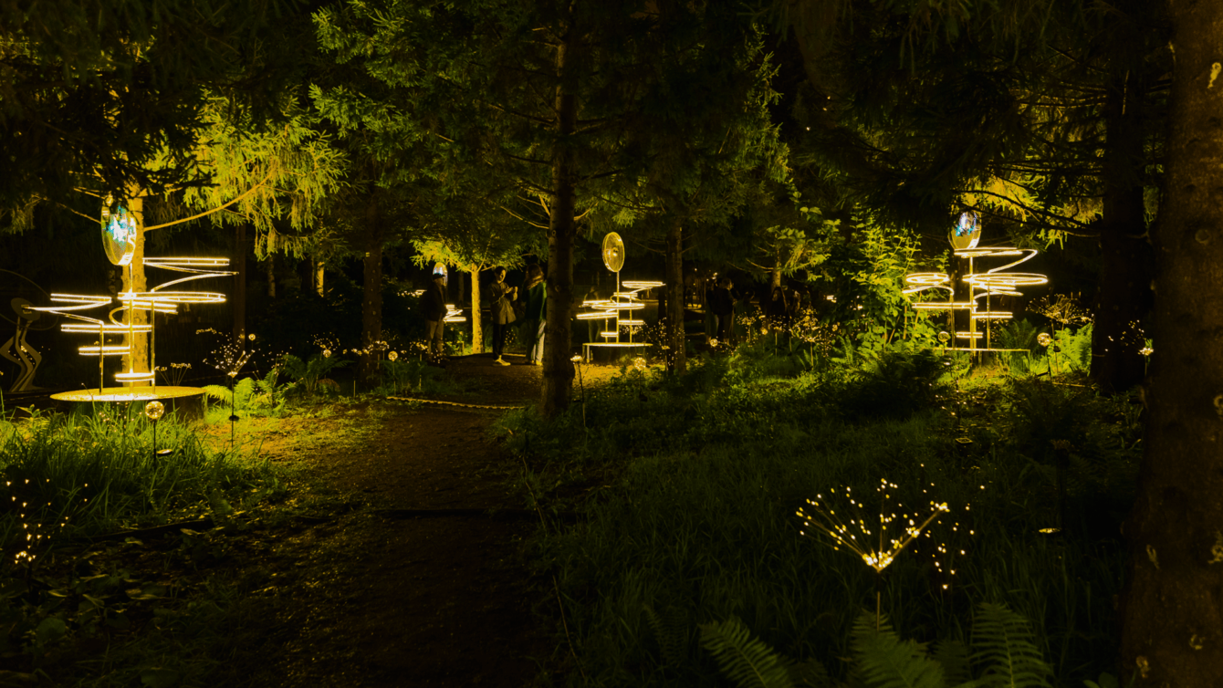 Для фестиваля “Город света” в московском парке Зарядье нужно было создать световую арт-инсталляцию, отражающую связь традиций и современности. В качестве площадки для реализации была предоставлена хвойная роща.