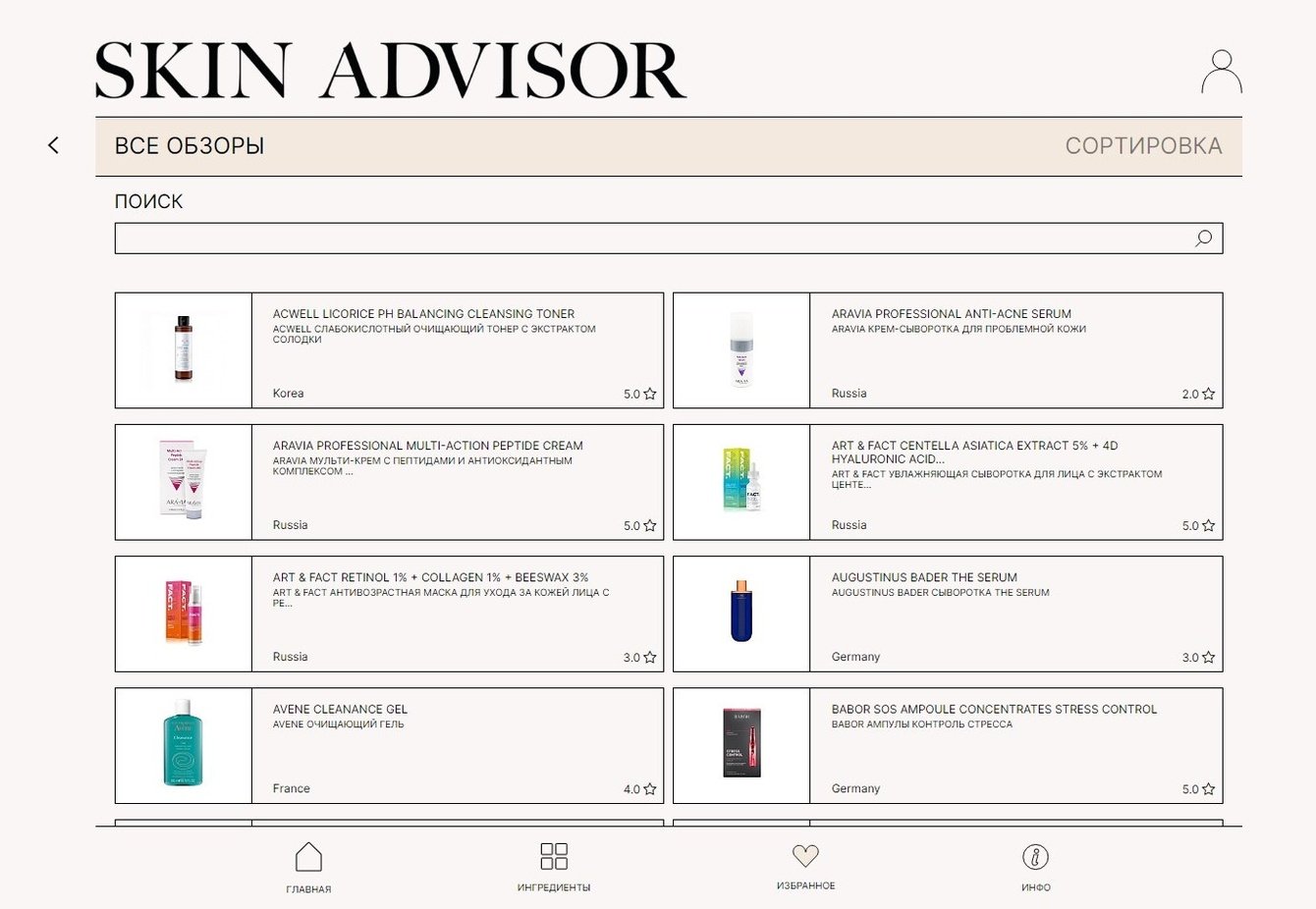 В новом разделе пользователь должен был иметь возможность легко подобрать себе уход или проверить как сочетаются несколько средств. Для этого наши заказчики составили таблицу с компонентами в разных концентрациях и их сочетаемостью друг с другом.