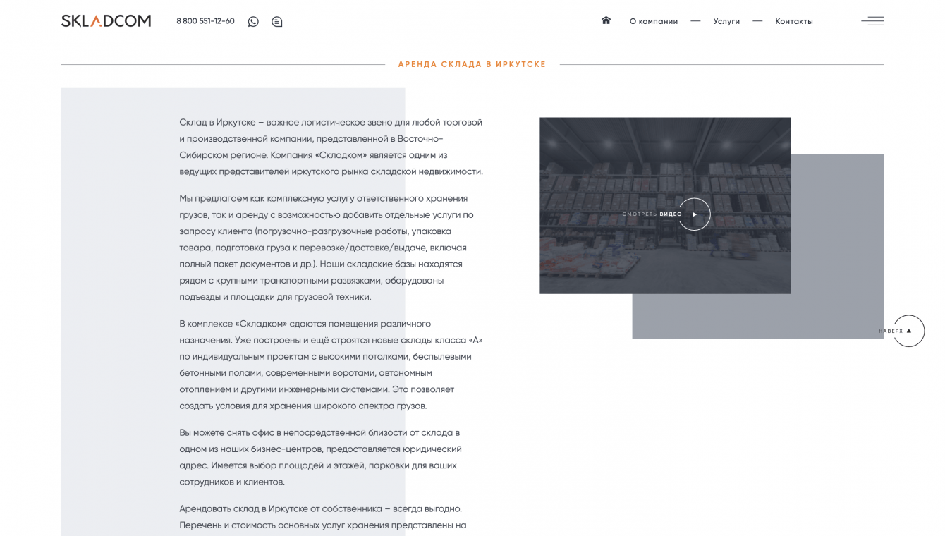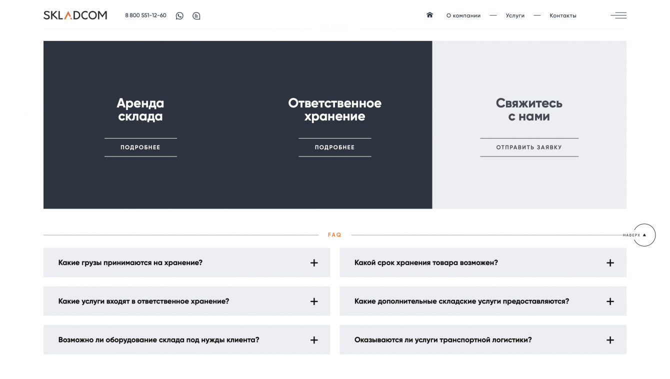 Клиент пришёл к нам с прямой задачей: рассказать о компании и её деятельности и предоставить клиентам возможность ознакомиться с расположением и транспортной доступностью всех складов. Нам необходимо было сделать не просто удобный сайт для пользователя, но и познакомить его с продуктом — рассказать историю создания и раскрыть всю душу бренда.