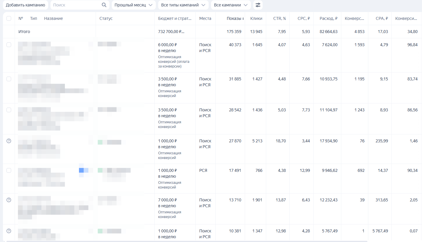 С помощью мастер кампании собирали статистику и тестировали тексты, аудитории. В дальнейшем эти сегменты перевели в поисковые кампании и в РСЯ. На данный момент они не дают той эффективности, что давали в начале.
