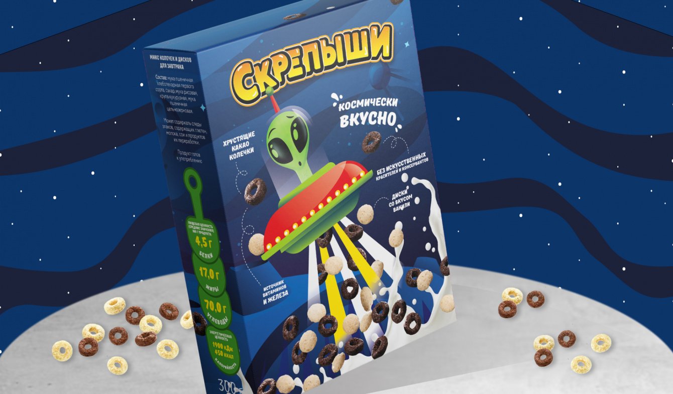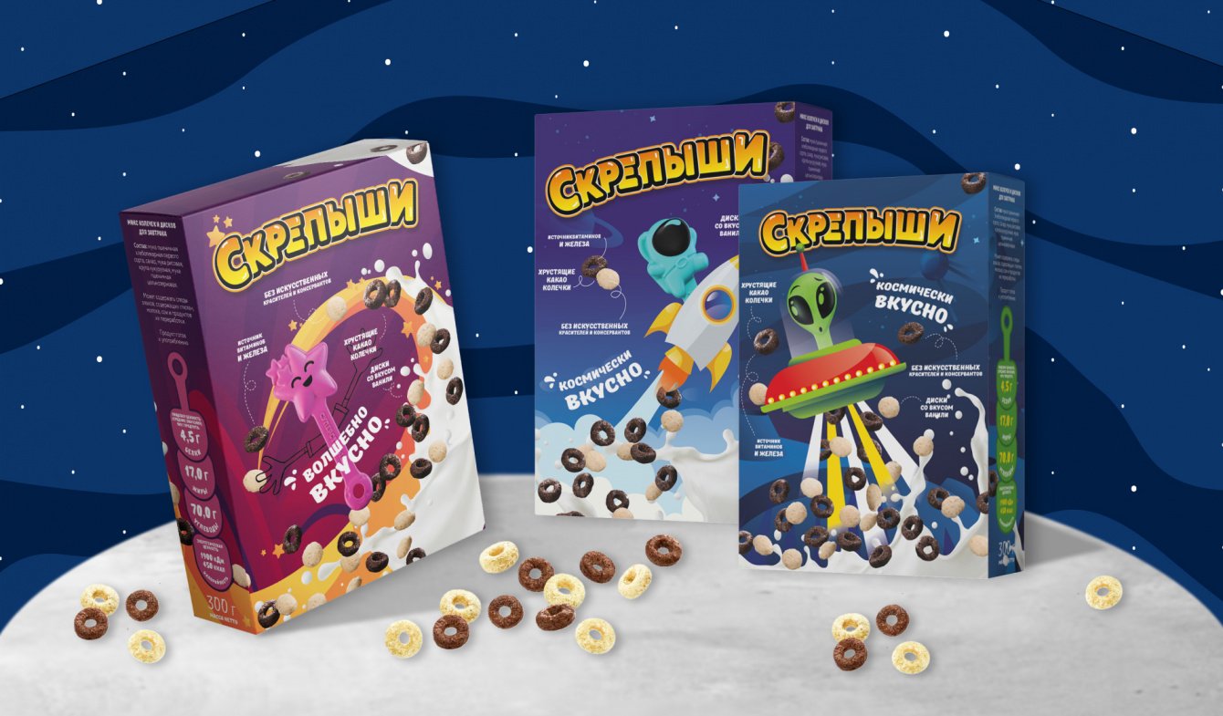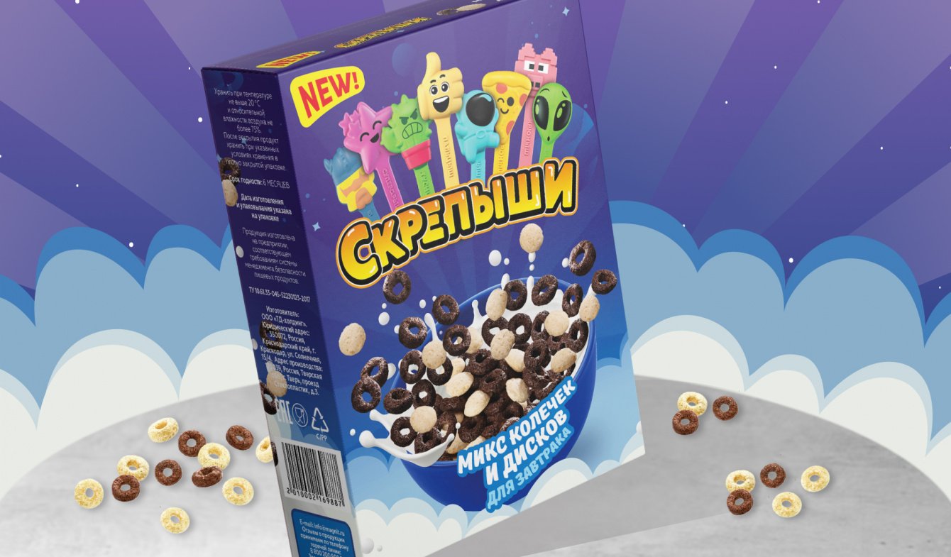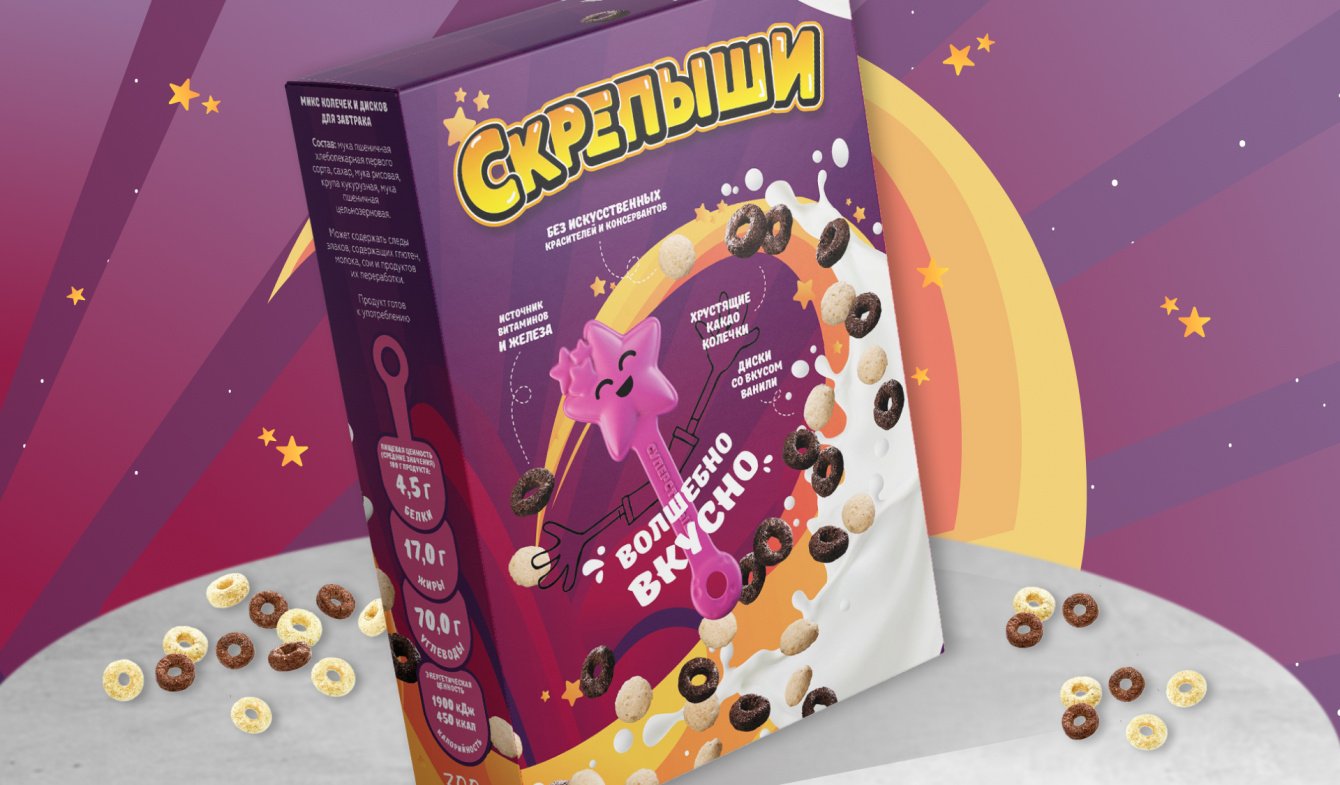 Адаптация дизайна упаковки колечек для завтрака торговой марки "Скрепыши" (Магнит).