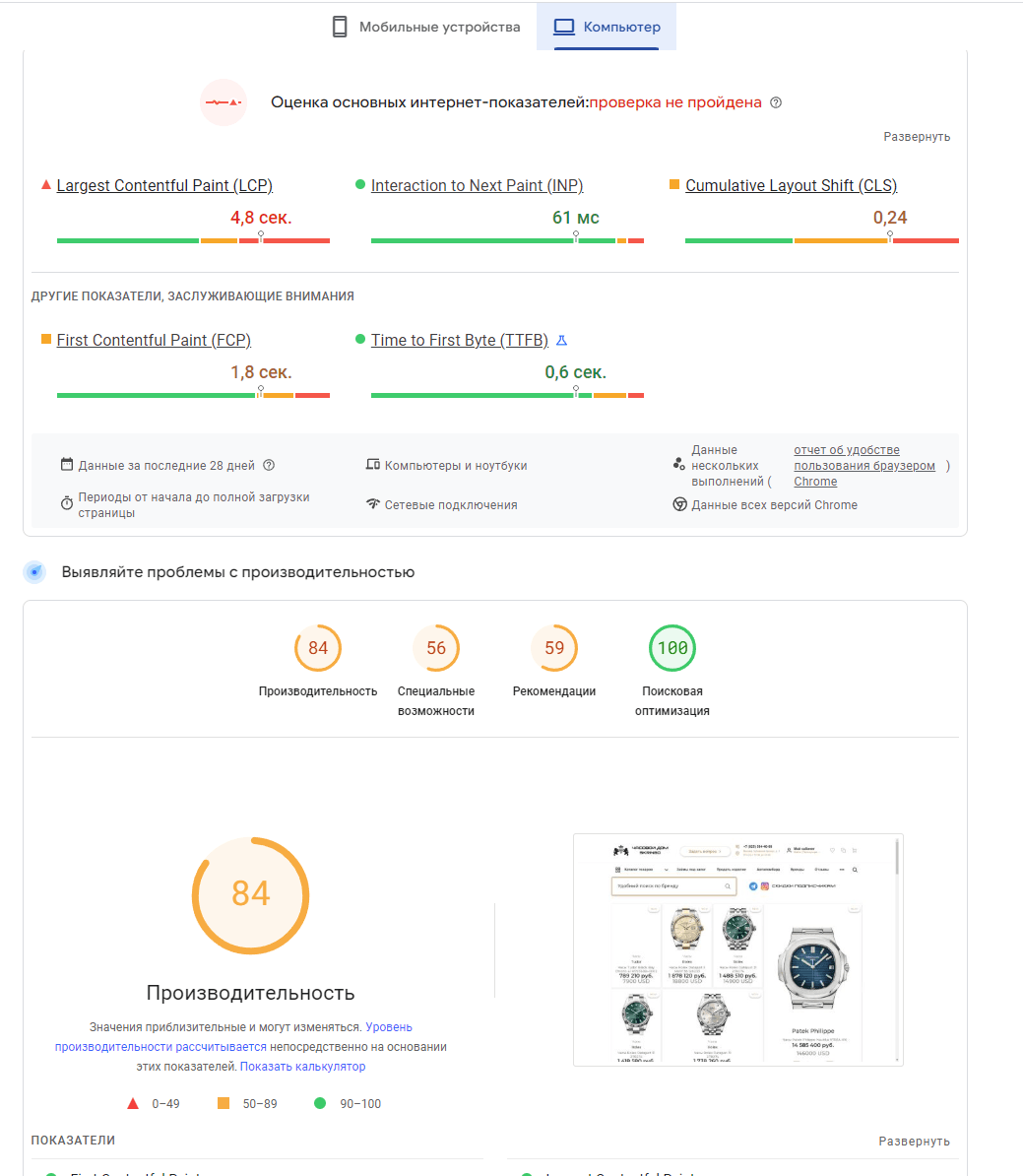 После запуска нового сайта скорость загрузки выросла значительно — это положительно сказалось и на поведении пользователей, и на позициях.