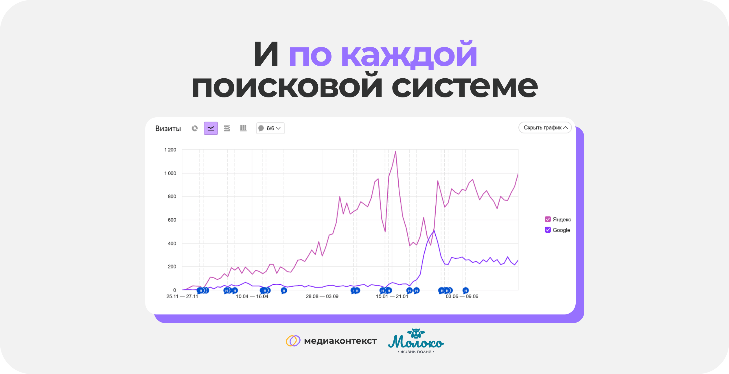 Параллельно мы оптимизировали посадочные страницы на основе детального анализа конкурентов и выполнили ряд мероприятий по прокачке коммерческих факторов сайта, что значительно усилило его позиции в выдаче.