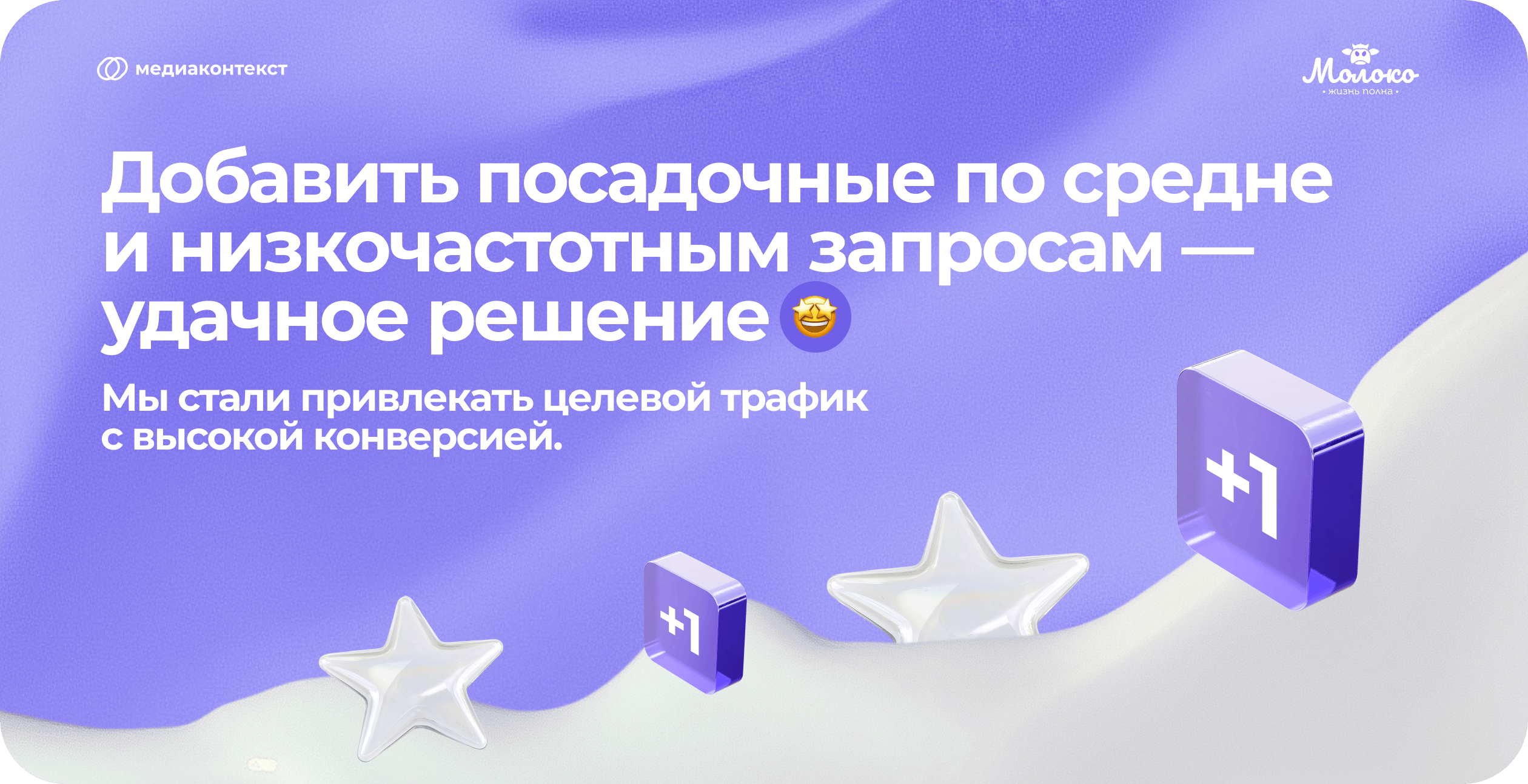Видя потенциал в средне и низкочастотных запросах, мы добавили посадочные страницы по таким запросам. Это решение оказалось удачным – мы стали привлекать целевой трафик с высокой конверсией.