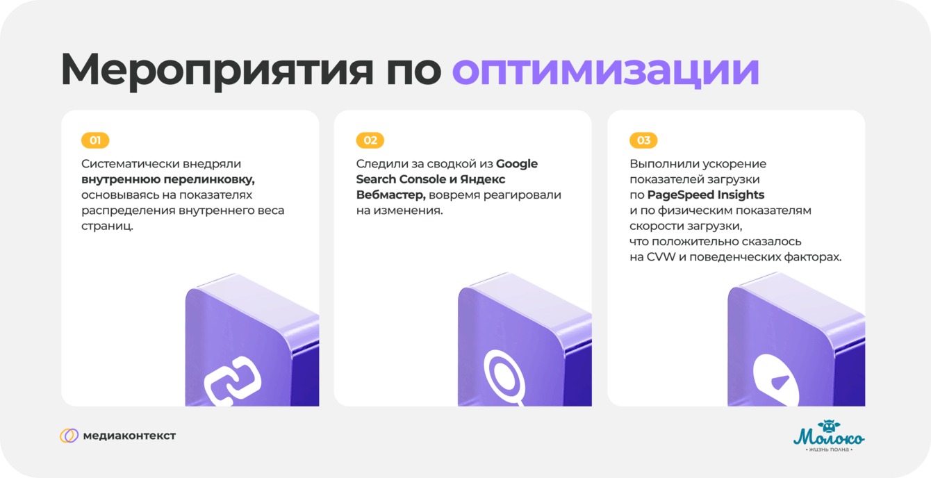 В ходе работы над проектом мы обнаружили ряд технических проблем, влияющих на ранжирование, поэтому провели ряд мероприятий по оптимизации: