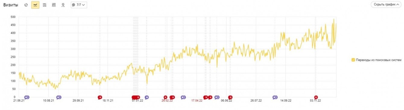 Был обнаружен сайт разработки на поддомене в поисковой выдаче, впоследствии закрыт от индексации и удален счетчик метрики – установленный на основном сайте и сайте разработки.