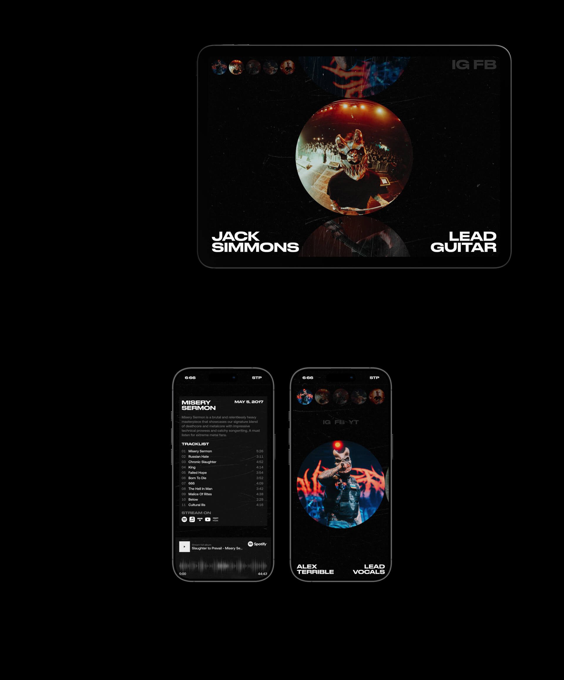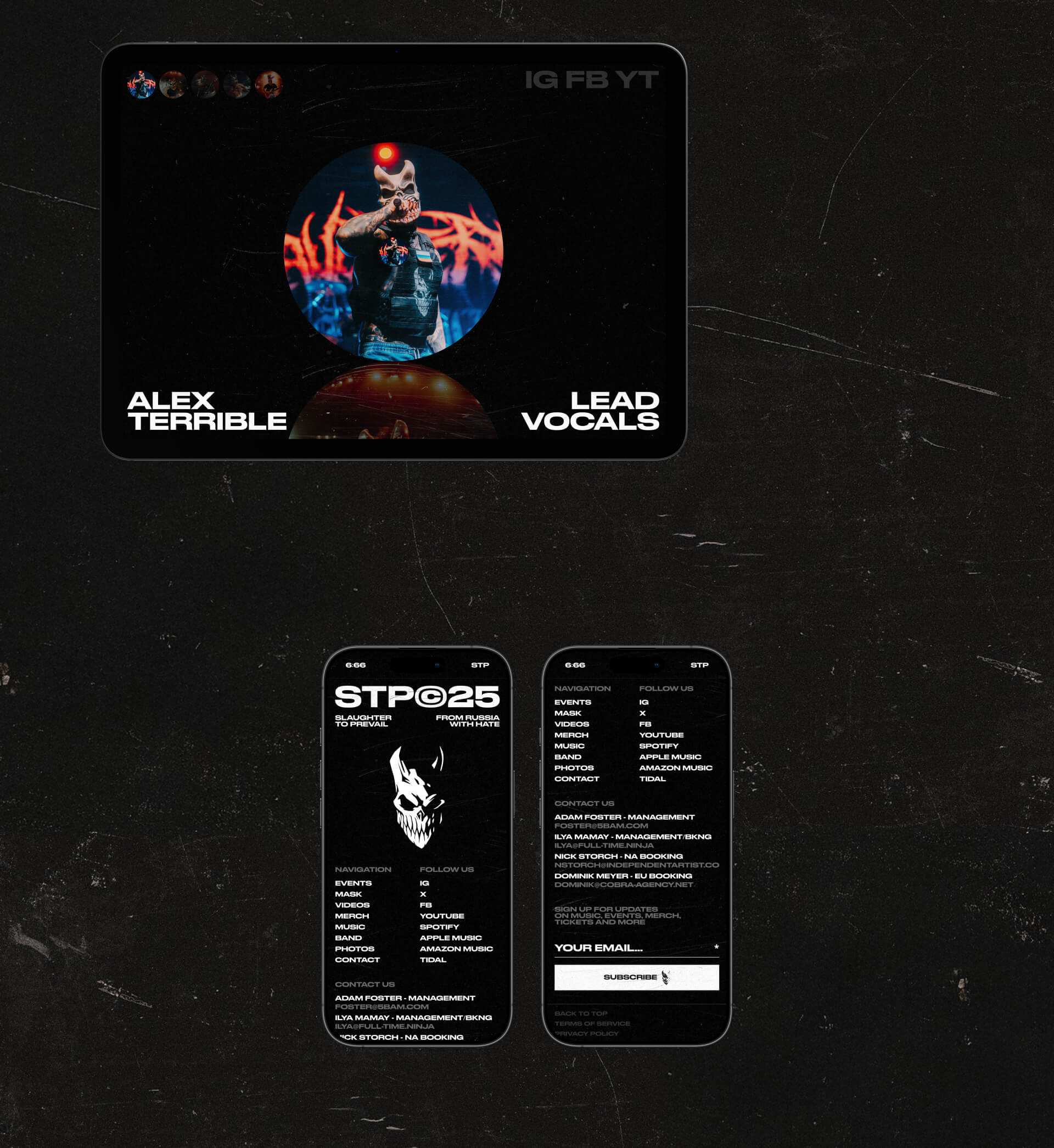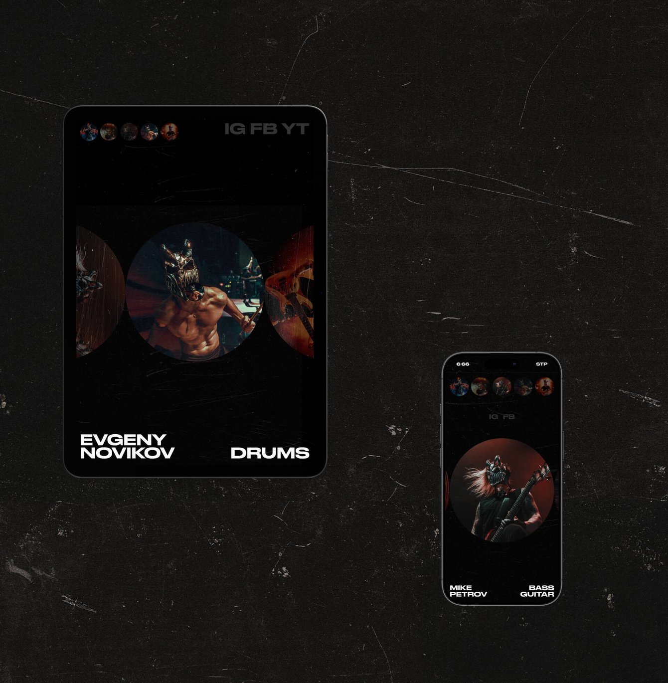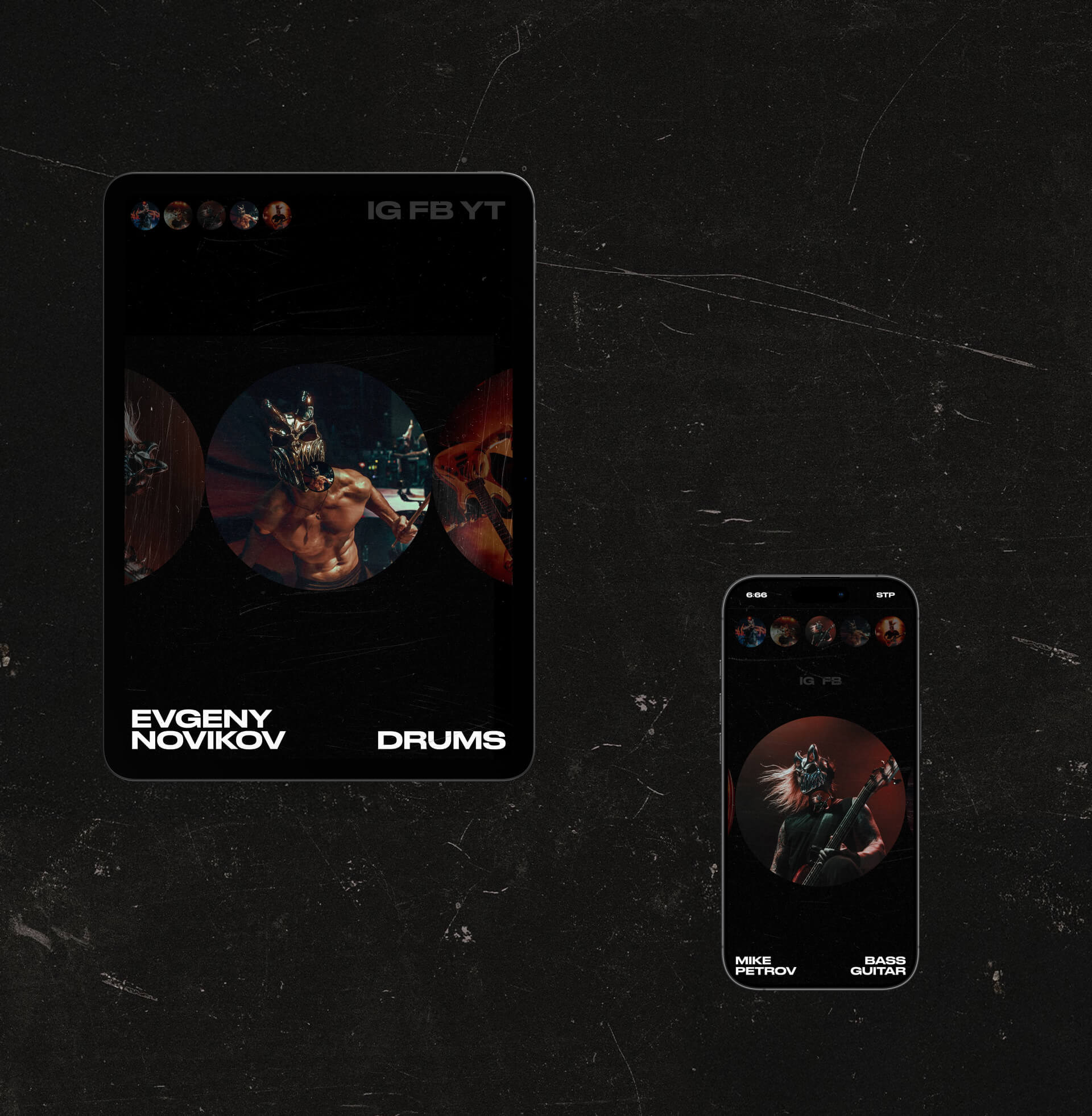 Сочетая брутальную эстетику с передовым веб-дизайном, динамичной 3D-моушн-графикой и впечатляющей анимацией. Нам хотелось сделать брутальный андеграундный сайт, который передал бы драйв и эмоции от музыки ребят пользователям, а также подсветить их главную фишку — маски.