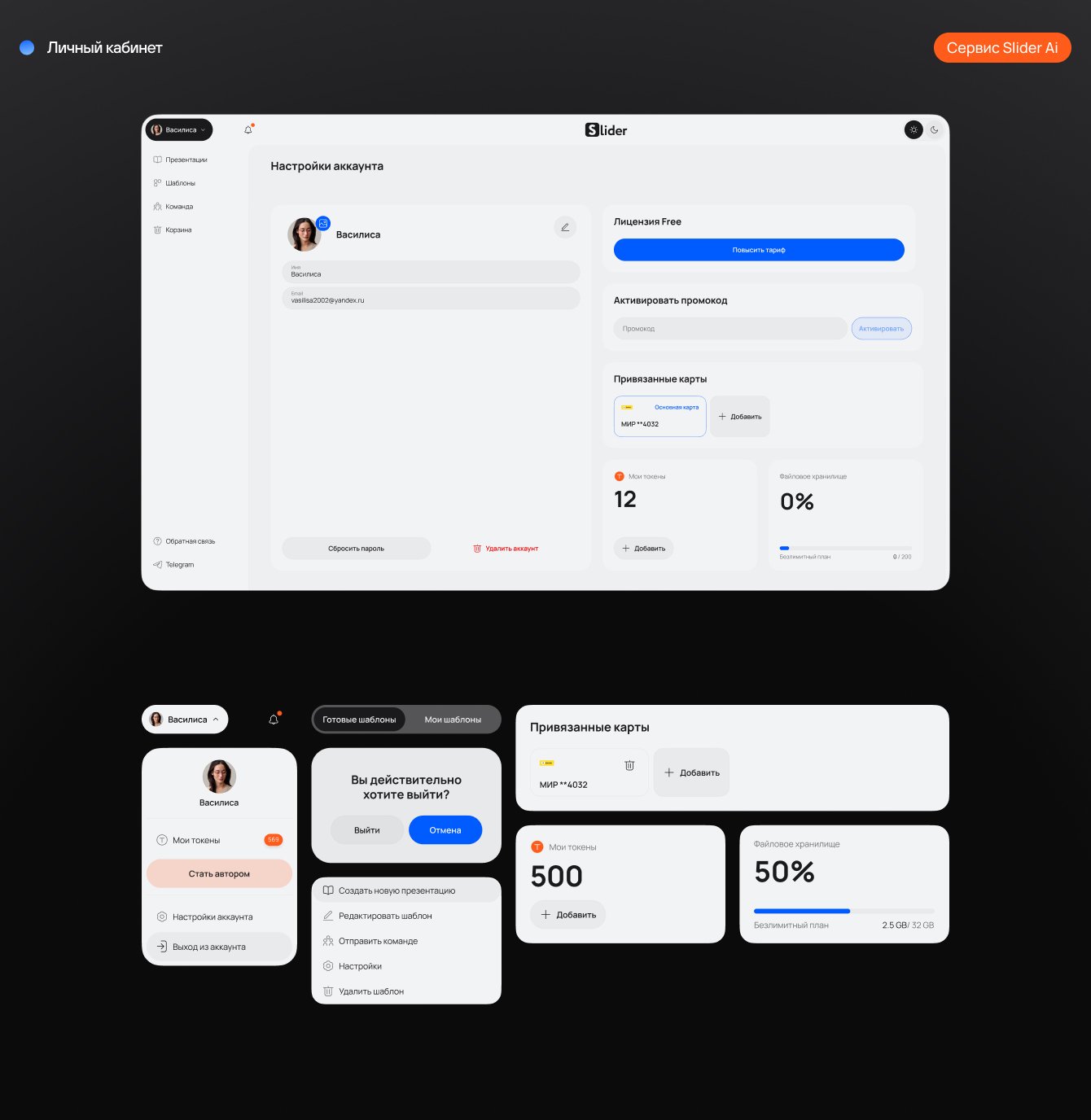 Кардинально обновили личный кабинет пользователя внутри редактора презентаций Slider Ai. Сделали пространство интуитивно понятным, с простым и приятным дизайном, добавили новый функционал — чтобы работа с ЛК была максимально комфортной клиентам Slider Ai.