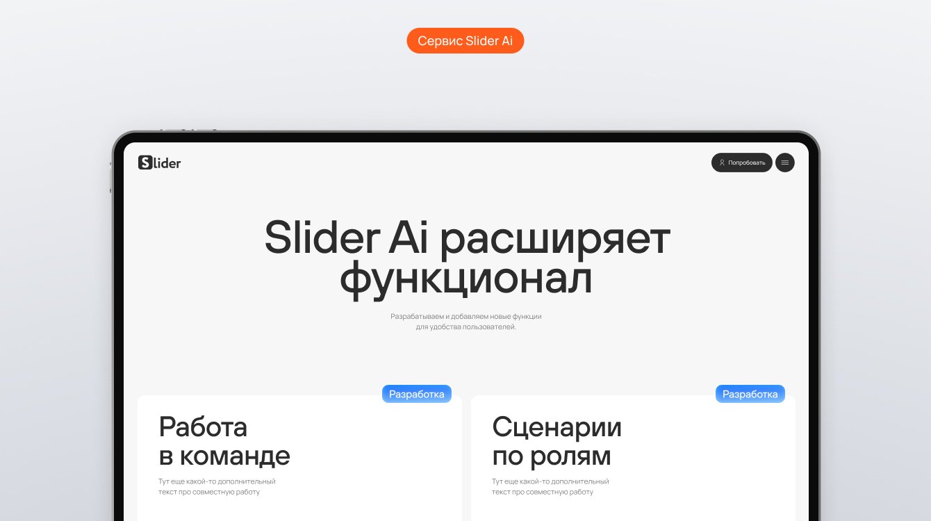 Нам важно было, чтобы новый сайт Slider Ai был максимально востребован целевой аудиторией: решал их задачи, запоминался и понятно доносил, как работает редактор презентаций Slider Ai.