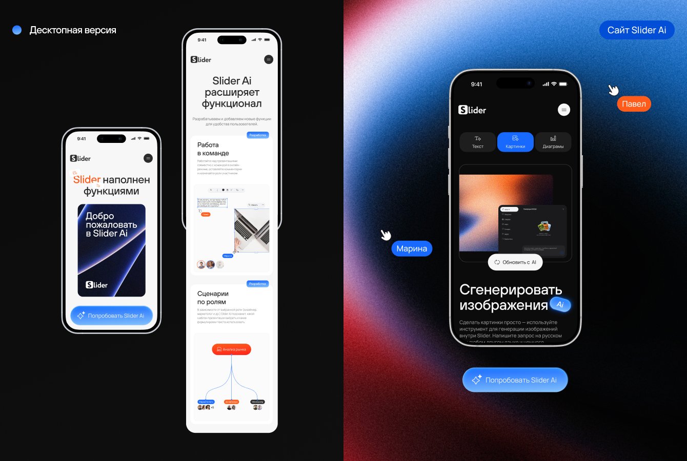 Мы начали с аналитики и дизайна сайта Slider Ai — а в итоге обновили редактор презентаций Slider Ai и под ключ создали и запустили сайт продукта.