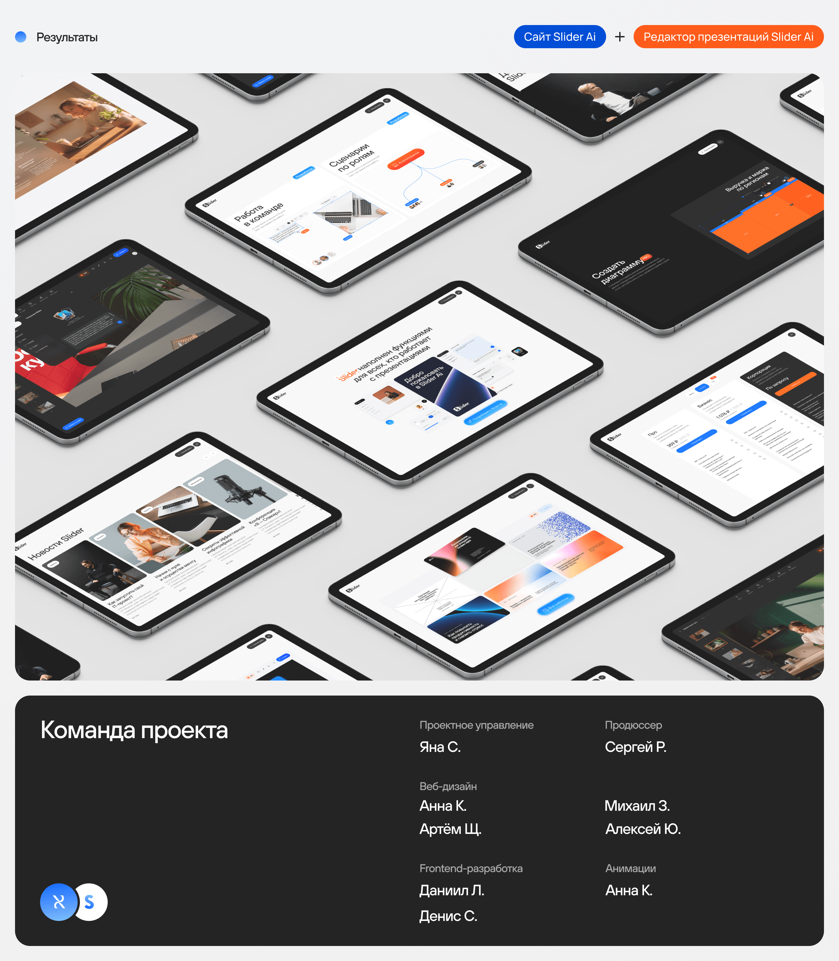 Мы начали с дизайна сайта — а закончили полным редизайном редактора презентаций Slider Ai и запуском сайта. И все это в те же сроки, что были заложены на запуск сайта — фактически за 2 месяца с момента старта работ по дизайну!