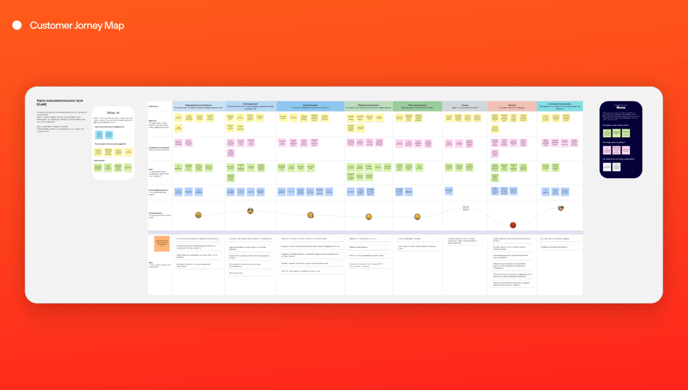 Вторым шагом стало построение CJM. Мы построили путь пользователя Slider Ai от зарождения потребности до решения о повторном использовании. Проследили: