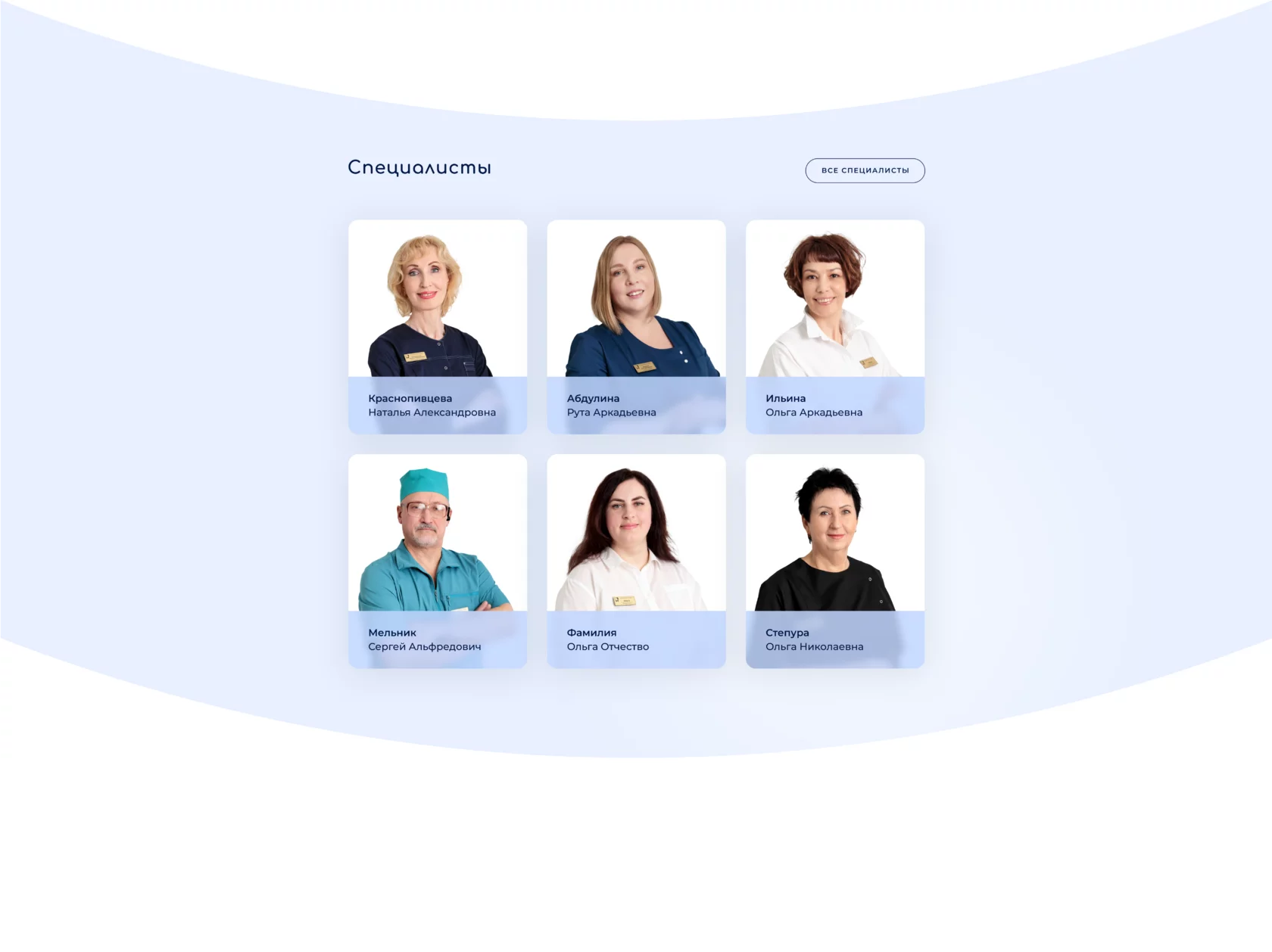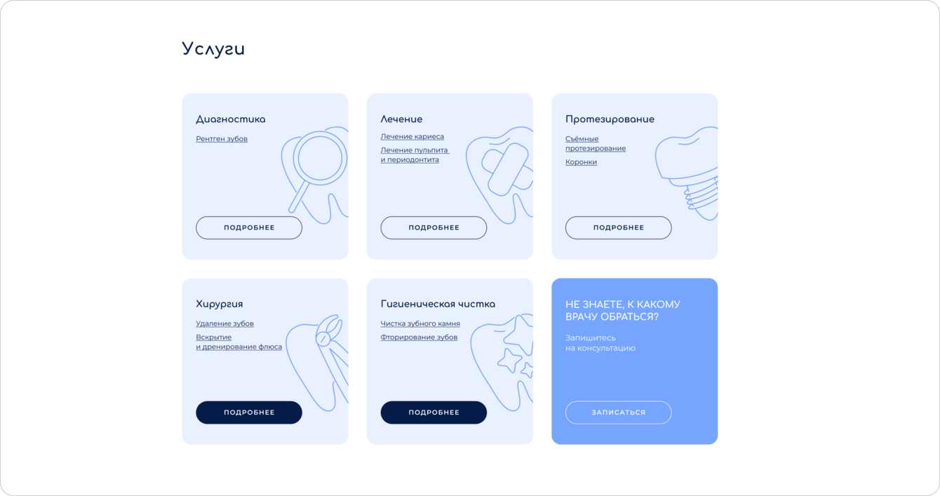 Каждый элемент дизайна работает на главную цель — сделать взаимодействие пациента с клиникой максимально простым и приятным, от первого знакомства с сайтом до записи на прием.