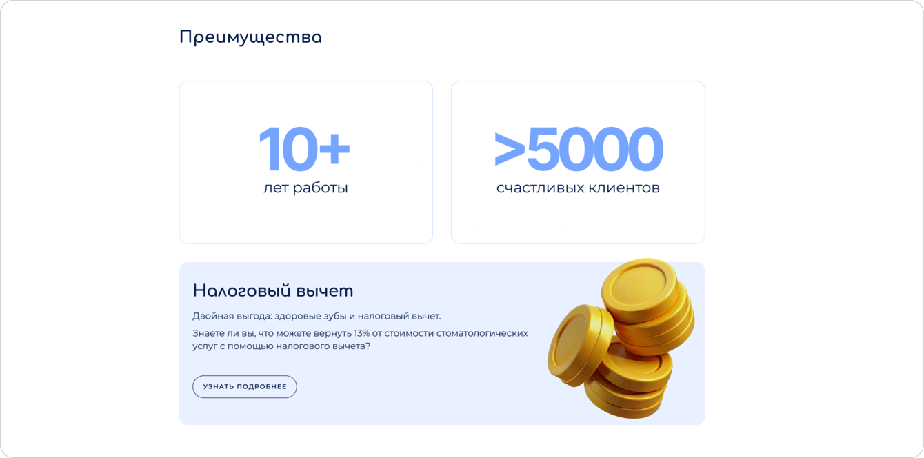 Создать современный веб-сайт для стоматологической клиники с оптимальным соотношением цены и качества.