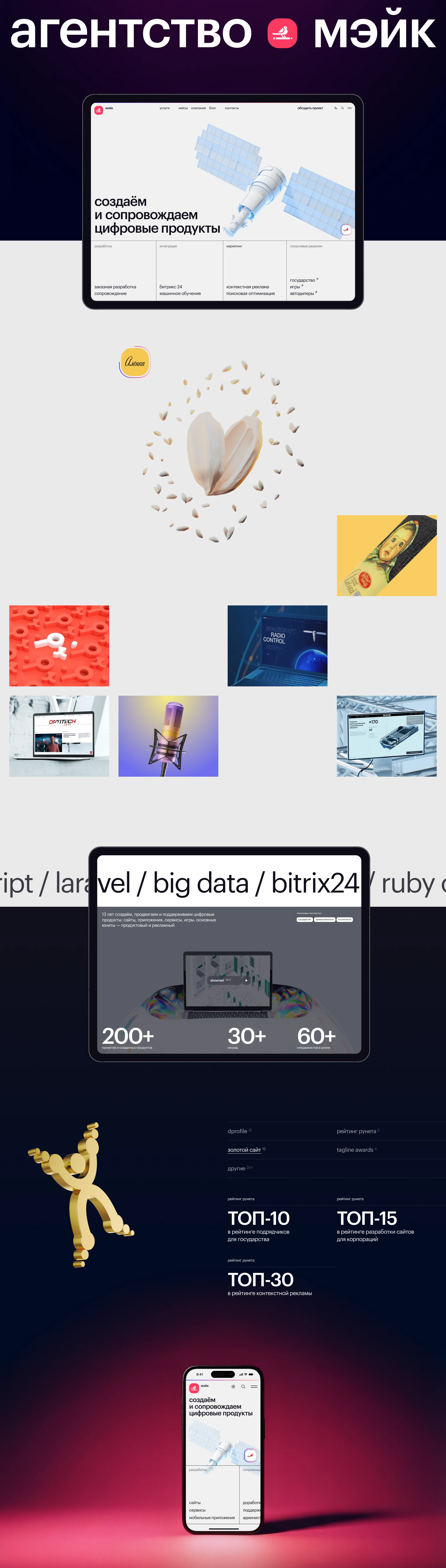Мэйк специализируется на работе с государственным и промышленном секторах. Эти рынки требуют не эмоций, а предсказуемости: чётких процессов, контроля выполнения и ответственности за результат — сайт должен объяснить и показать это.