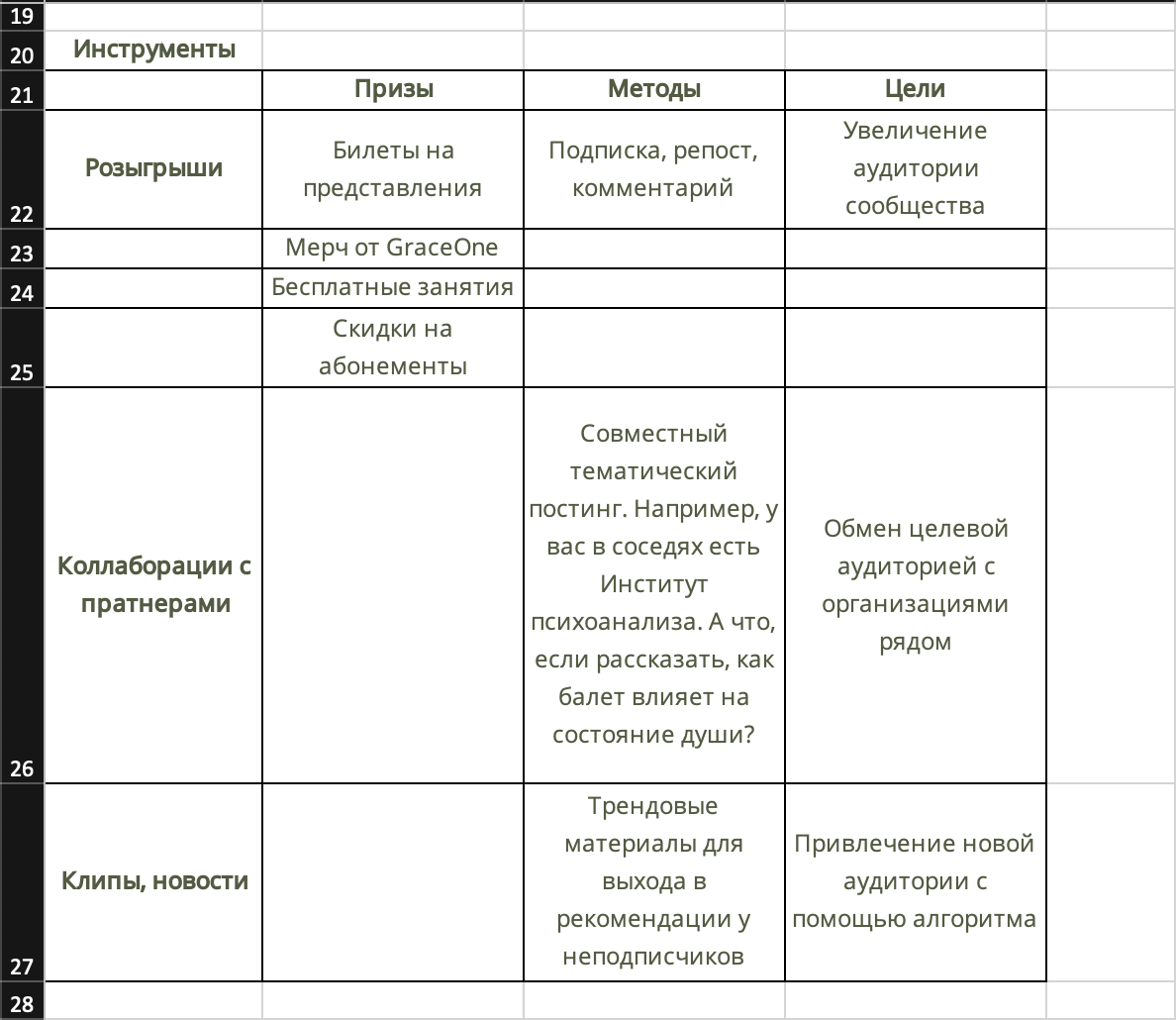На момент начала сотрудничества инструмент платной рекламы мы не могли рассматривать как потенциальный, поэтому составили список доступных инструментов: