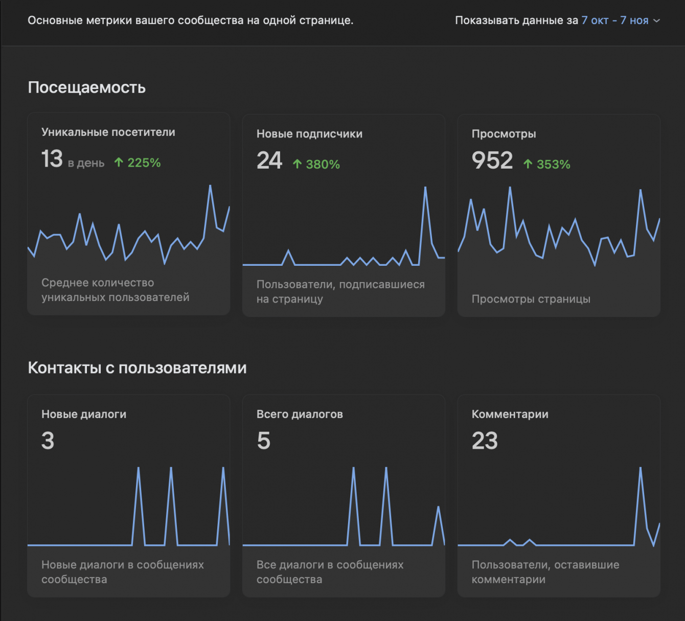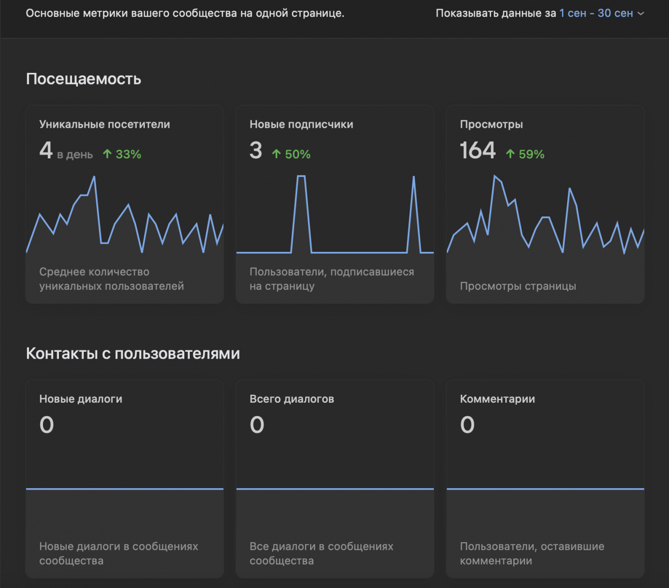 Ниже представляем статистику сообщества за месяц до начала нашей работы: